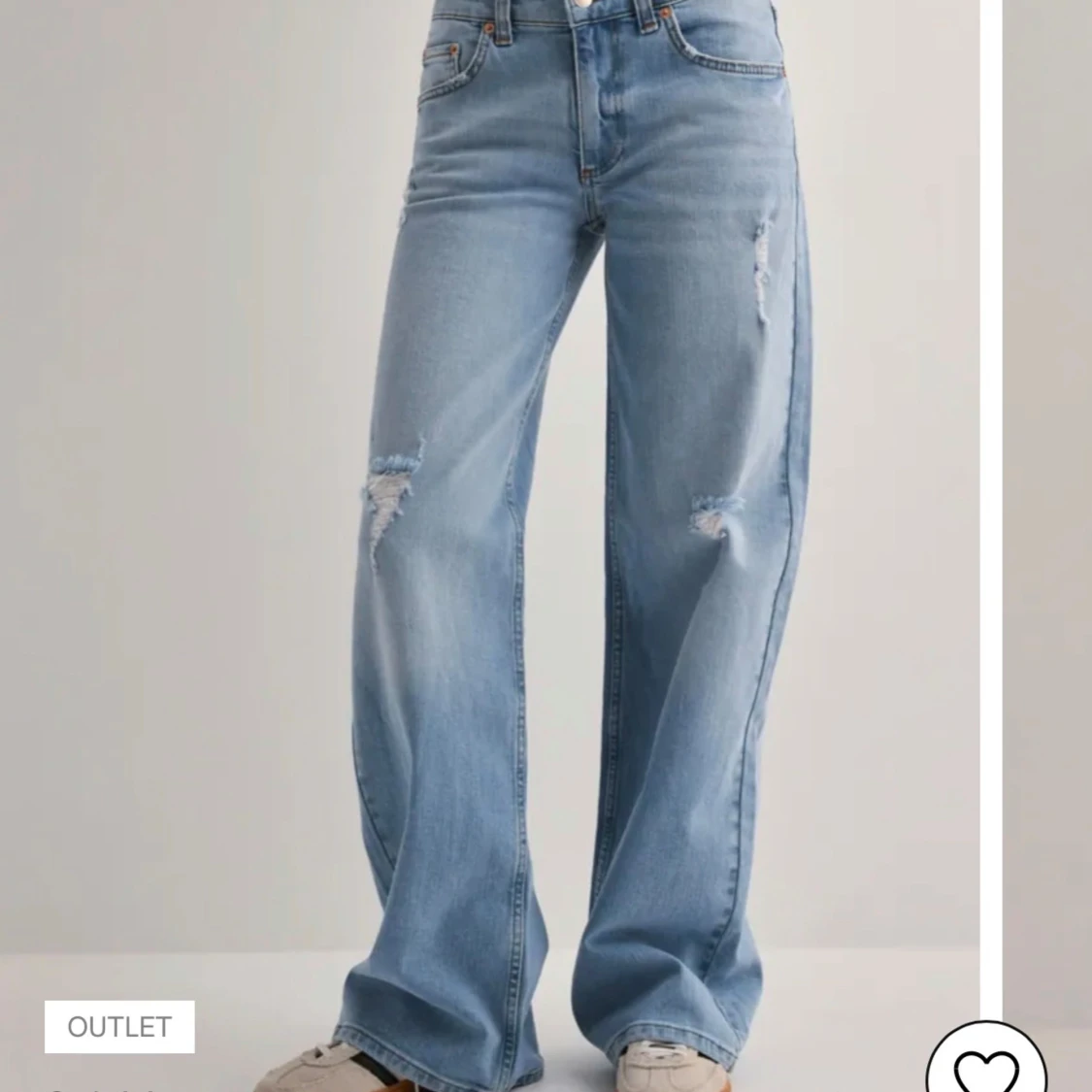 Snygga ljusblå jeans från nelly med breda ben och slitna detaljer på låren och knäna. Modellen har klassisk femficksdesign och låg midja för en trendig look. Perfekta för dig som gillar avslappnad streetstyle och vill sticka ut med coola jeans💕💕💕