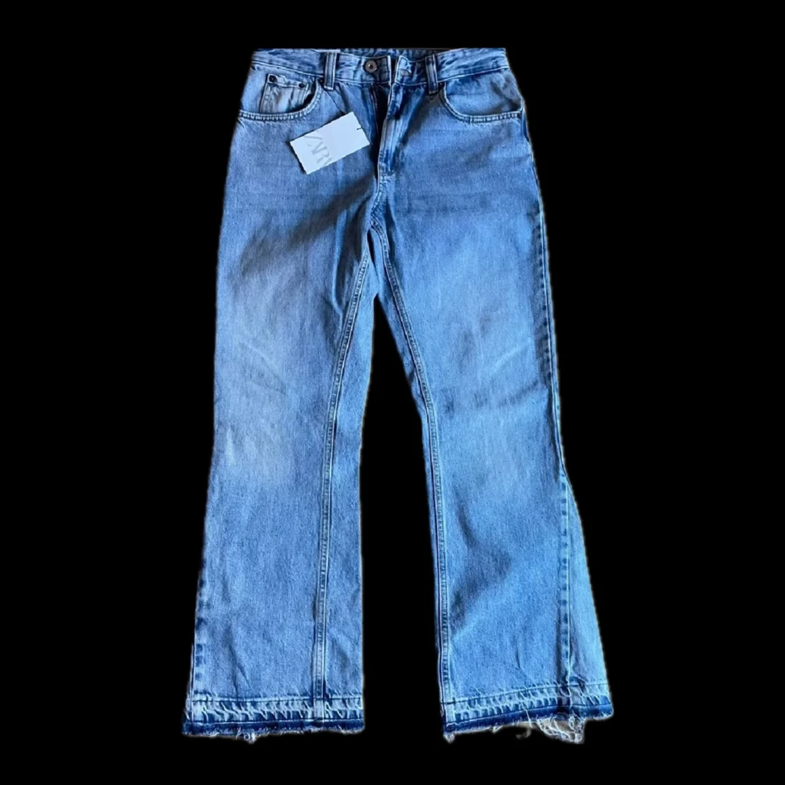 Helt nya Zara flare jeans som inte kommit till användning. Lappen sitter även kvar. Köpte de för någon månad sen, aldrig använts utomhus. Skicka ett dm vid ytterligare funderingar 💪