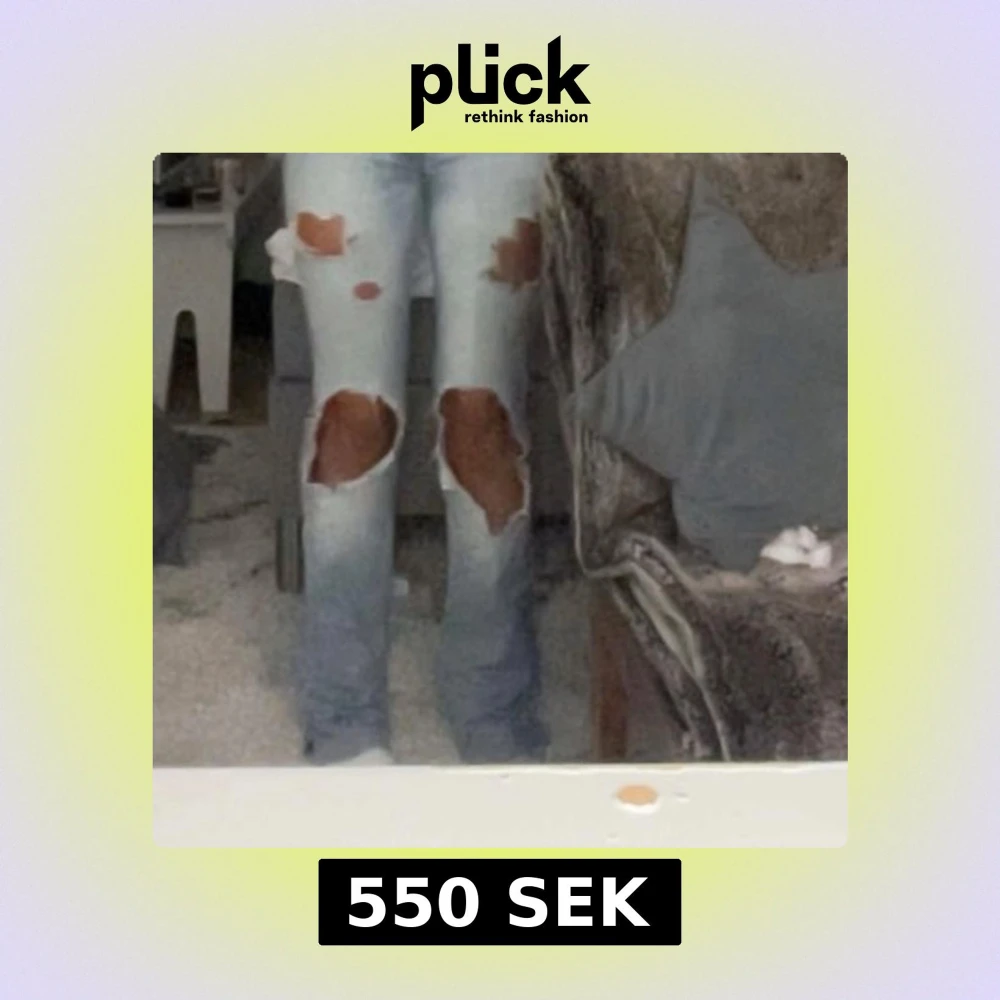 Säljer mina fina boutcutjeans dem är ljusblåa och väldigt lowwaist som man ser på bilden har dem flertal hål och är väldigt snygga till stockolmstil de har ett litet hål vid backfickan som inte syns när man har på dem dem är även insyda vid låren vid frågor är de bara att skriva och vid snabbaffär kan priset diskuteras