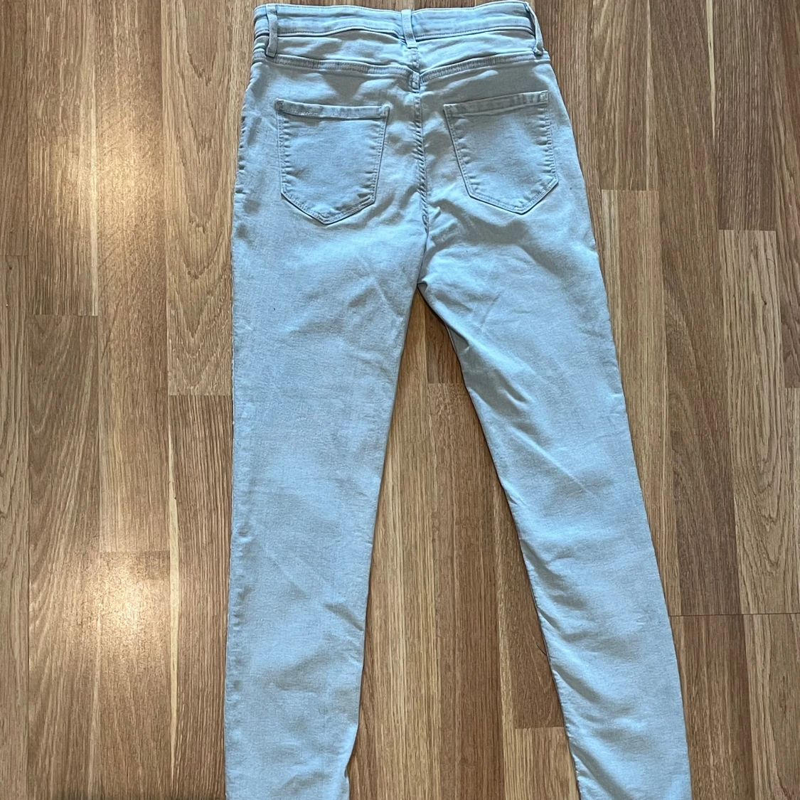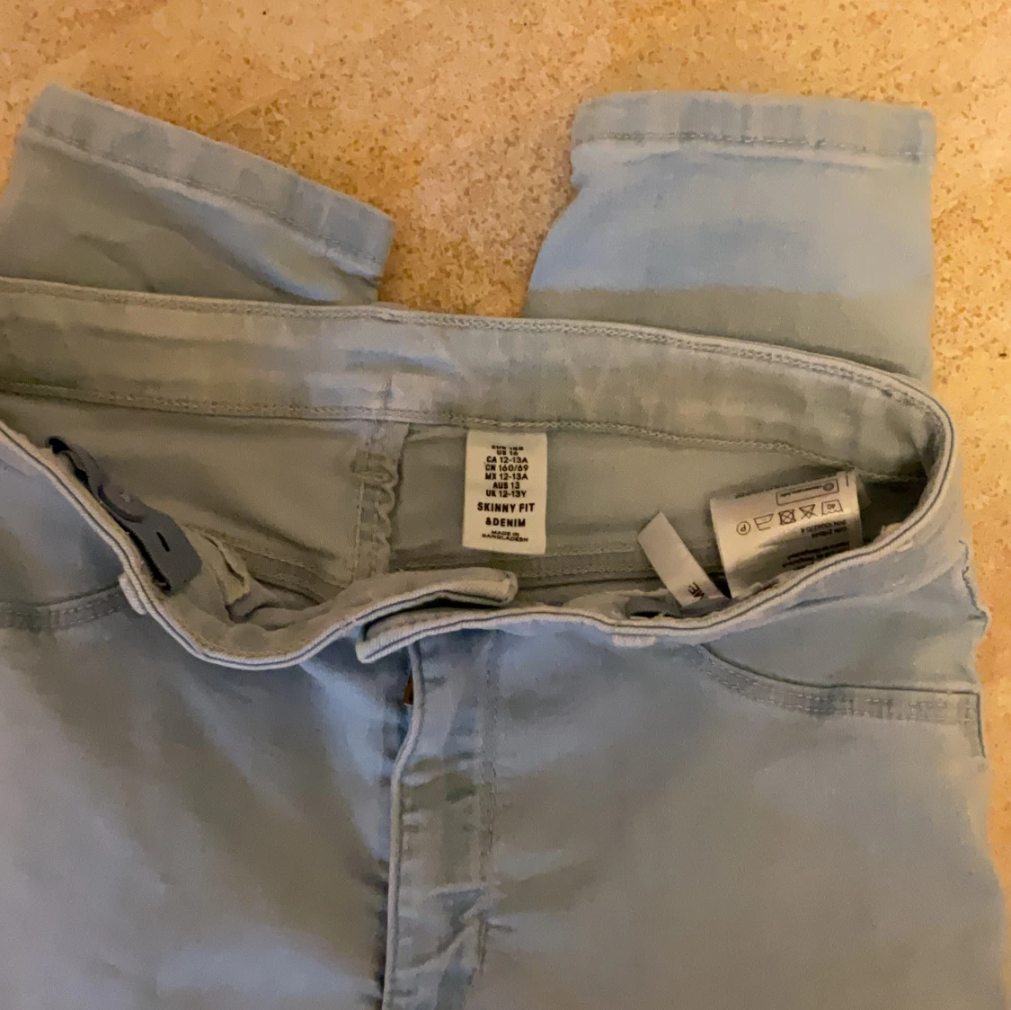 Säljer ett par ljusblå skinny fit jeans från H&M. Byxorna har klassisk femficksdesign, normal midja och är tillverkade i stretchig denim för en tight passform. Perfekta för dig som gillar en smal siluett och ljusa färger!