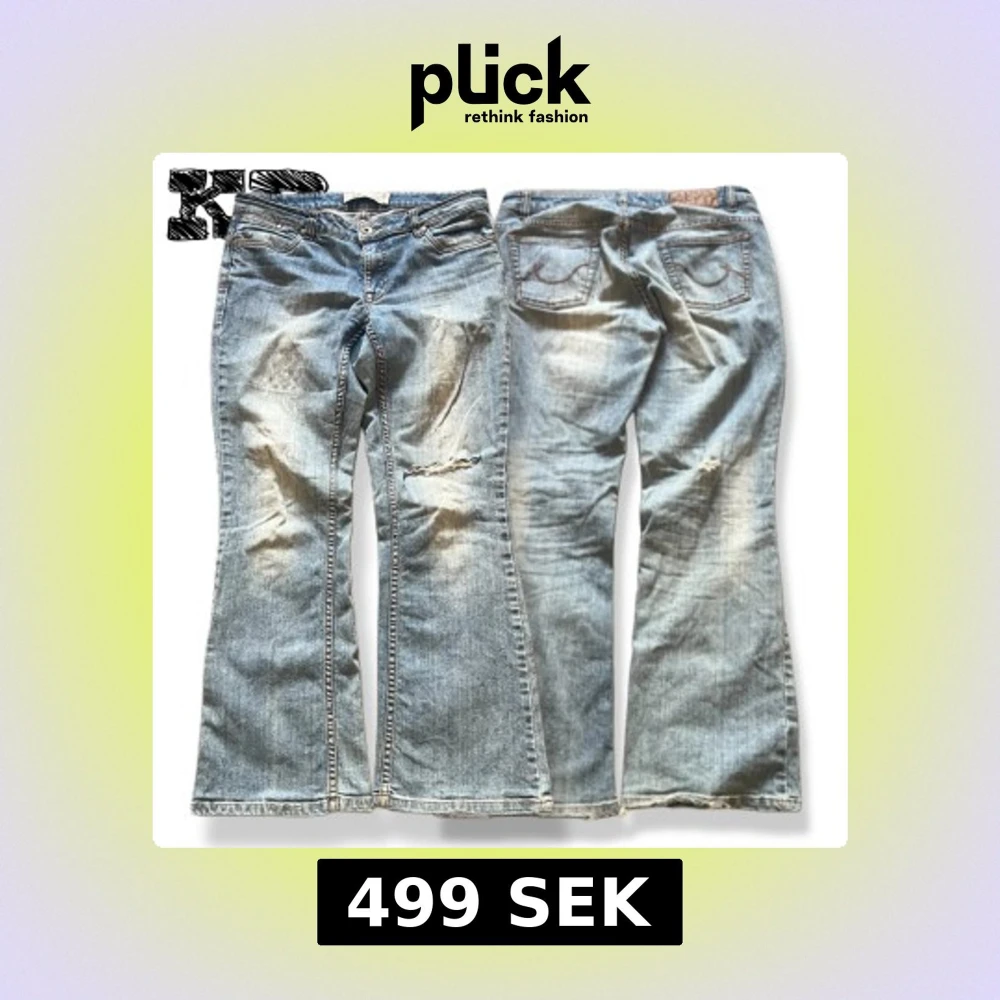 Ljusblå bootcut jeans från JSFN denim med slitningar och trasiga detaljer på benet. Klassisk femficksmodell med snygga kontrastsömmar och broderade bakfickor. Jeansen har en avslappnad passform och är tillverkade i bomull.