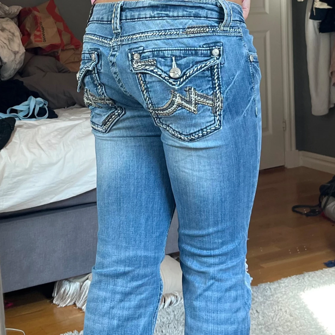 Säljer dessa jättefina ljusblåa miss me jeans då de tyvärr är lite för stora för mig. De är endast använda tre gånger. Jeansen är i storlek w31, midjemåttet rakt över är 42cm och innerbenslängden 88-89cm. Priset kan diskuteras vid snabb affär!