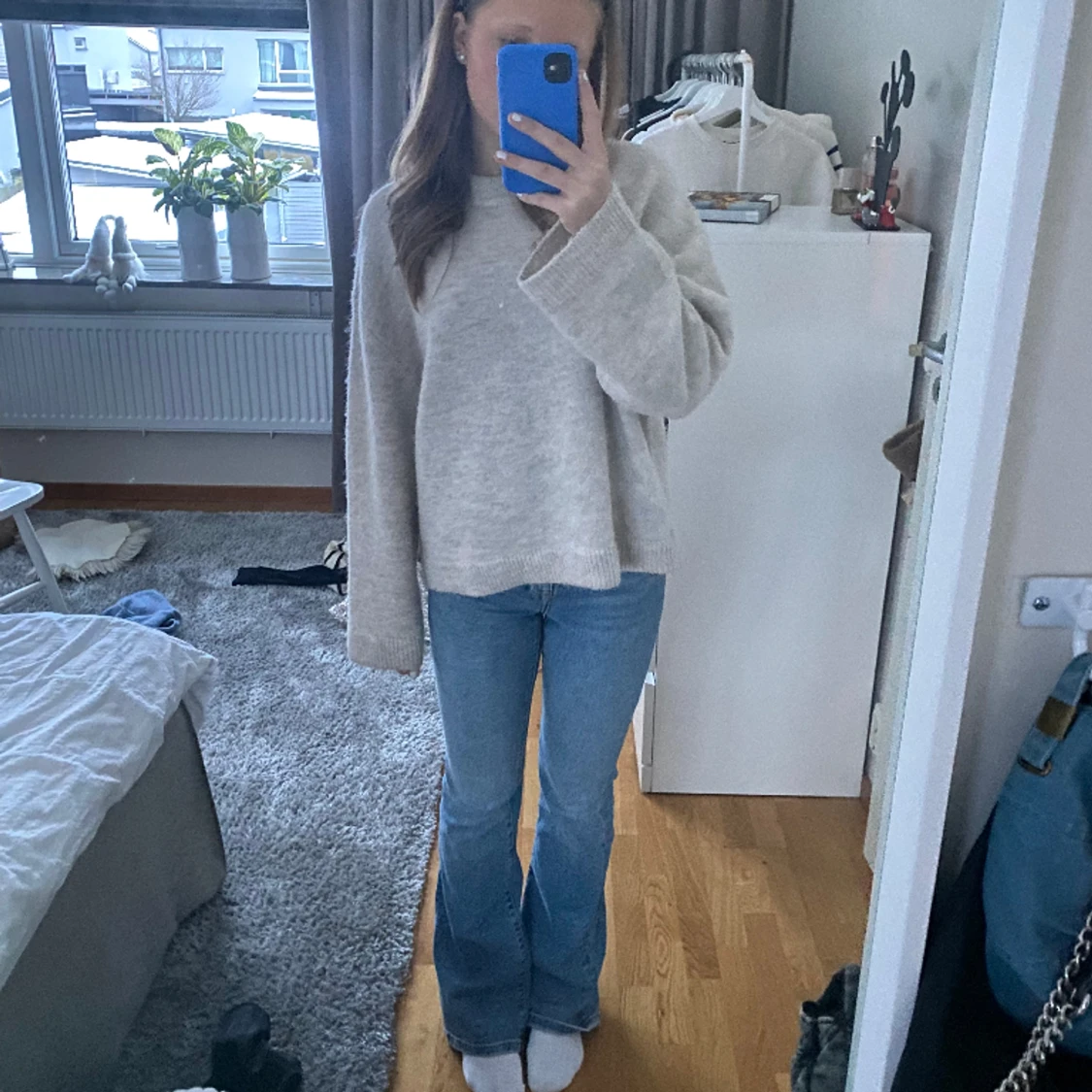 Jag säljer min ljusblåa bootcut jeans från zara. Köpte dom i somras och säljer dom på grund av att dom ej andvänds lägre🩷 skriv för fler bilder