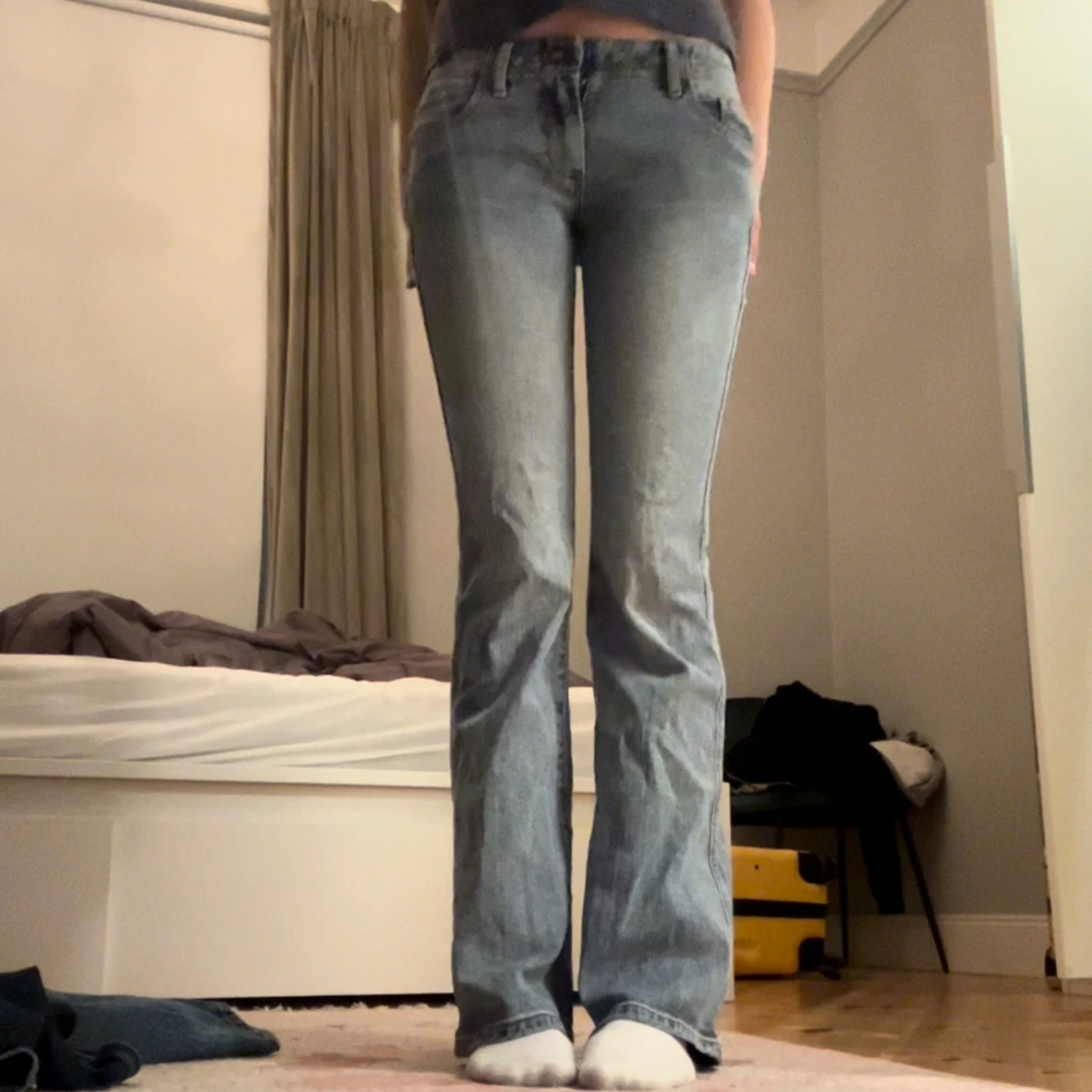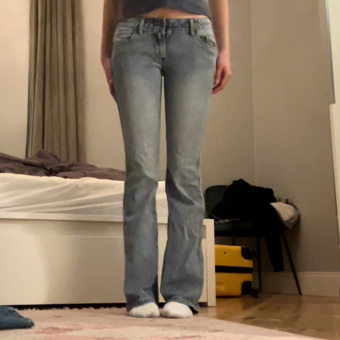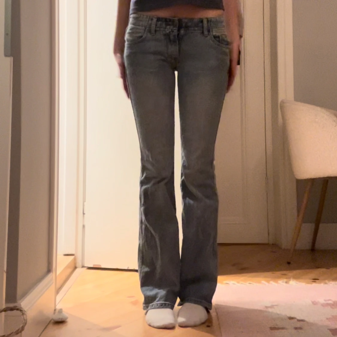 Säljer dessa jättefina Lågmidjade bootcut jeanses i en ljusblå färg. Passar bra på mig som är runt 173. Skriv för mått och fler bilder.