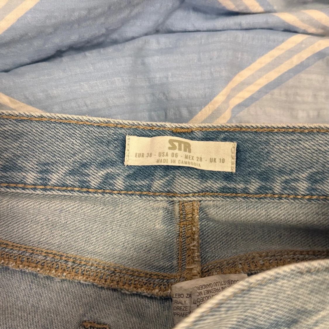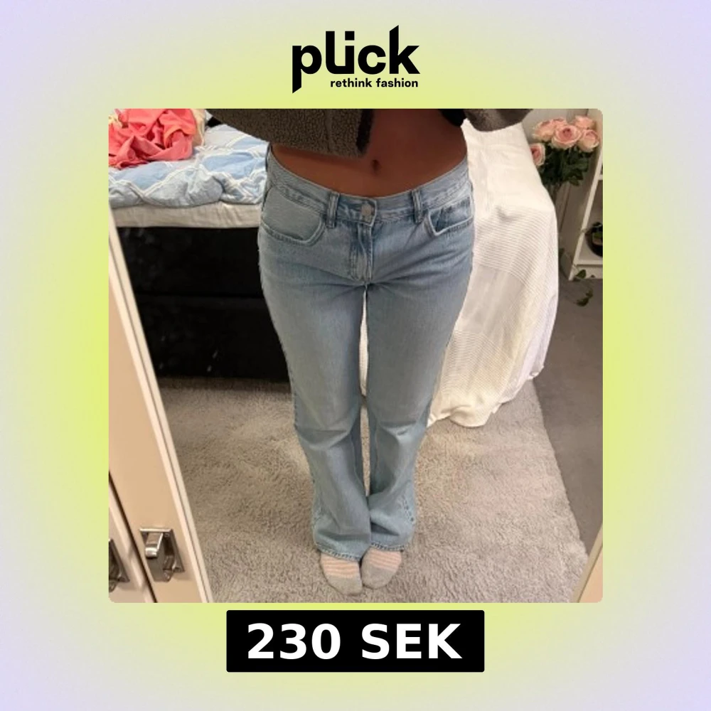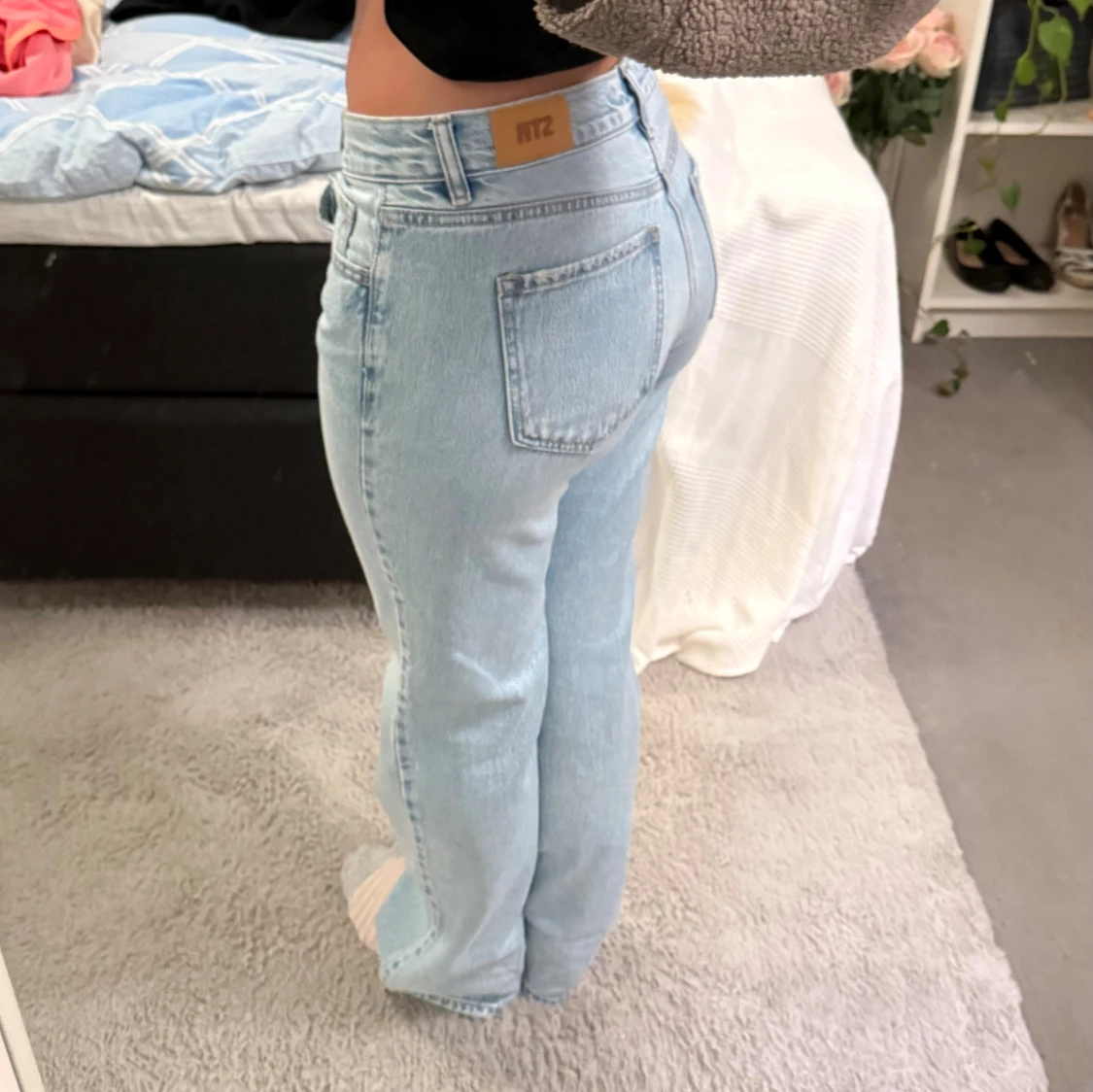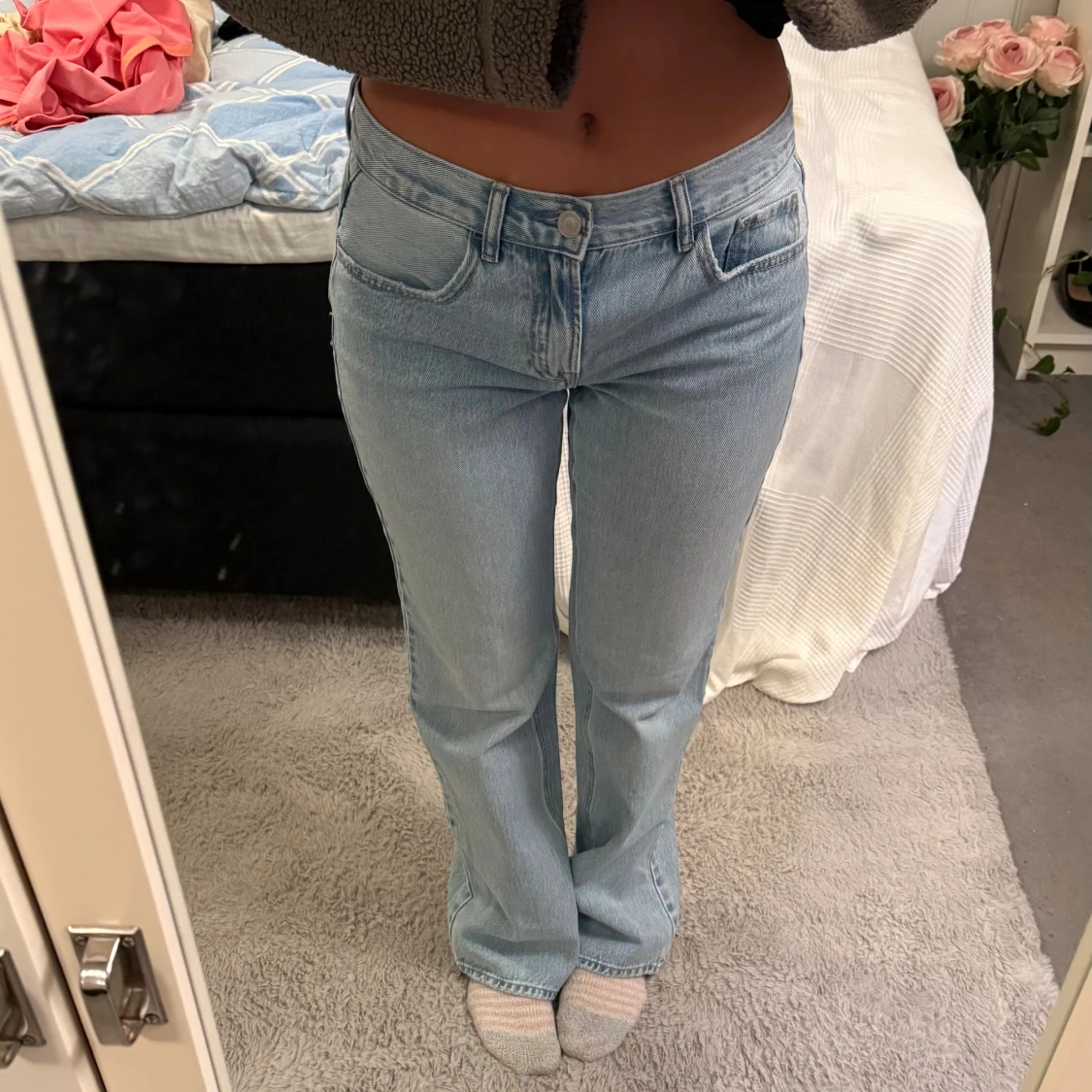Lågmidjade straight ljusblå jeans. Känns helt oanvända (köpte på vinted) och jättebra skick. De är i storlek 38 ifrån stradivarius. Passar mig som vanligtvis har storlek 36! 💛