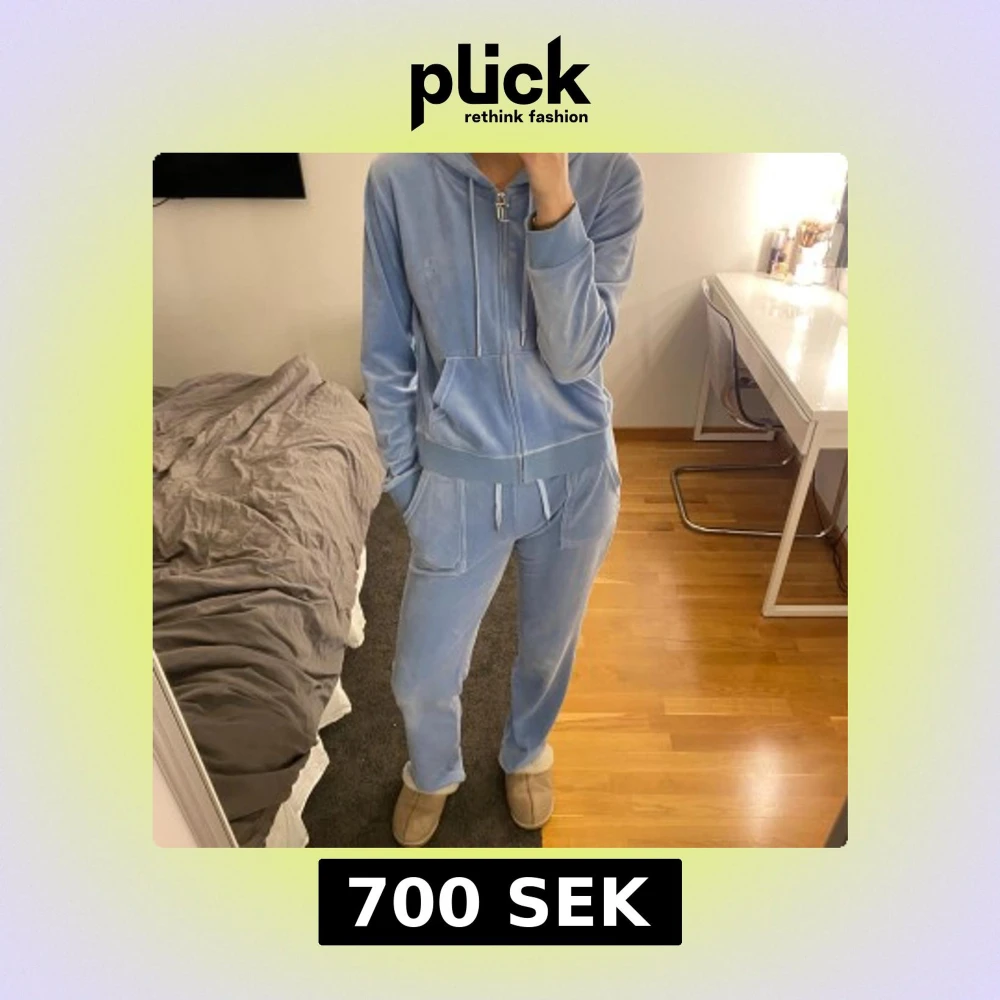 Säljer mitt ljusblåa Juicy set. Byxorna är i storlek S och tröjan i storlek M. Byxorn har lite fläckar längst ner på baksidan av benen.