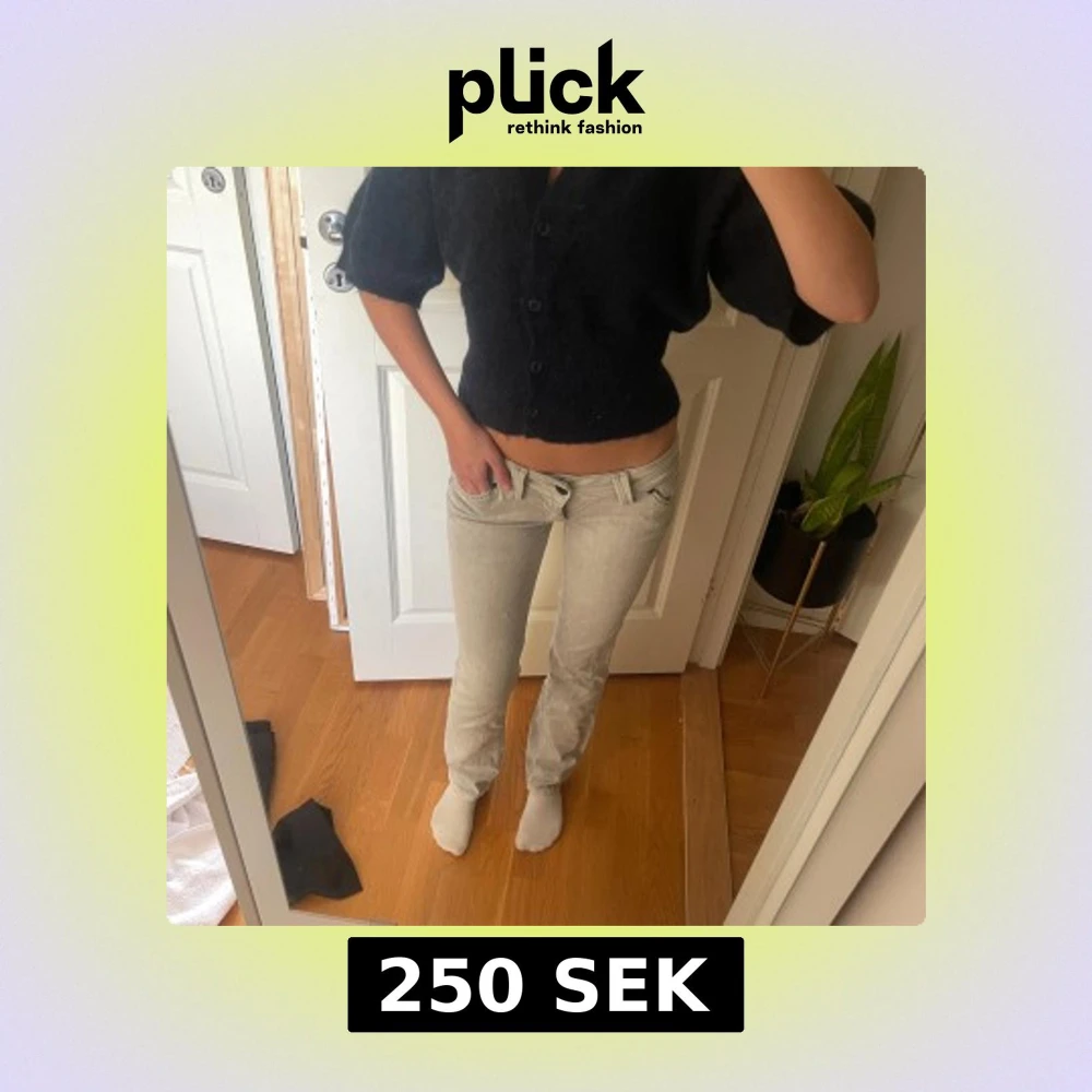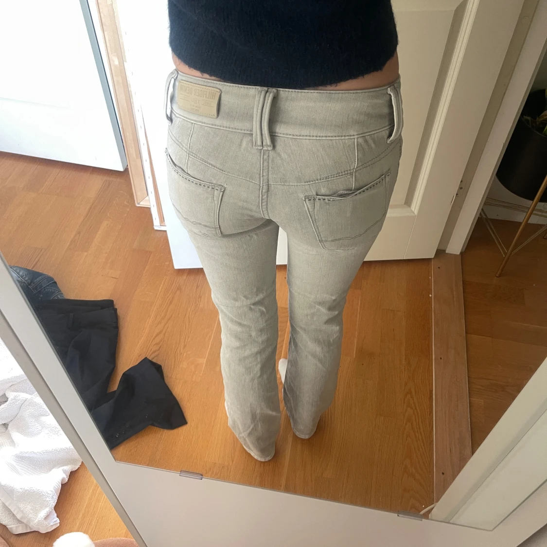 Säljer ett par ljusgrå jeans köpta på sellpy men från tommy hilfiger med bootcut passform och låg midja. Midjemåttet är 72 cm och för referens är jag 167 cm lång med innerbenslängd på 80 cm!💕