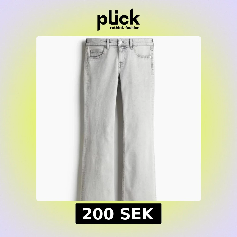 Snygga ljusgrå jeans från H&M Divided med bootcut-passform och klassisk femficksdesign. Jeansen har normal midja, dragkedja och knapp framtill samt bälteshällor. Perfekta för en trendig och avslappnad look.
