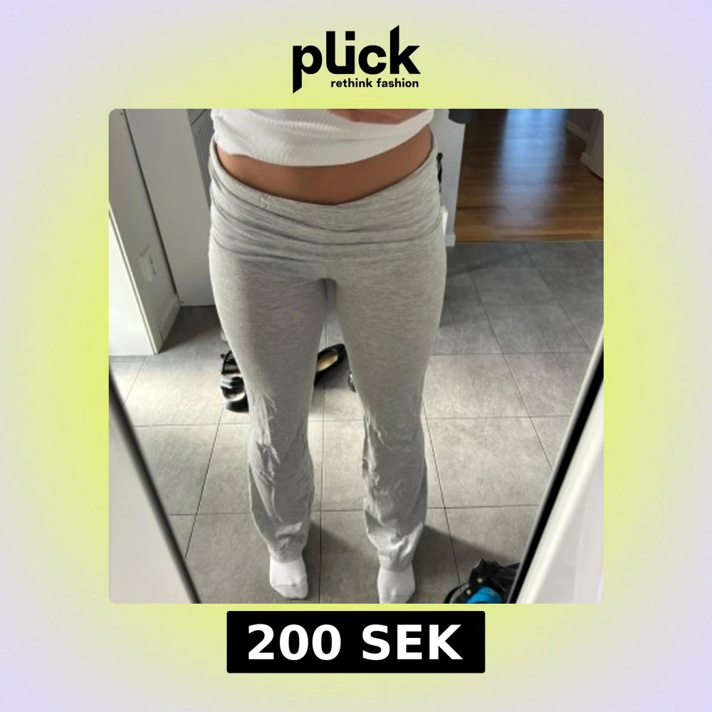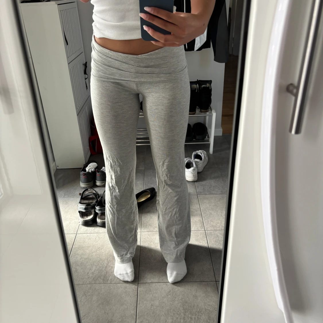 Säljer ett par ljusgrå yoga pant med låg midja. Byxorna är i mjukt bomullsmaterial och har en skön, loose passform. Perfekta för chill dagar eller när du vill vara bekväm men ändå se snygg ut. Storlek 158/164 men passar bra på mig som har xs i vanliga fall