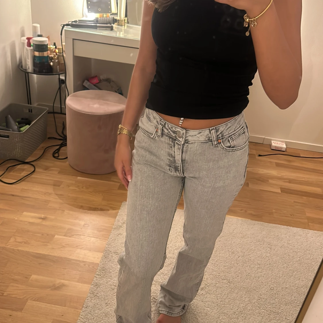 Snygga ljusgrå jeansbyxor med en klassisk design. De har en lågmidjad passform och raka ben som ger en avslappnad look. Perfekta för en stilren vardagsoutfit.