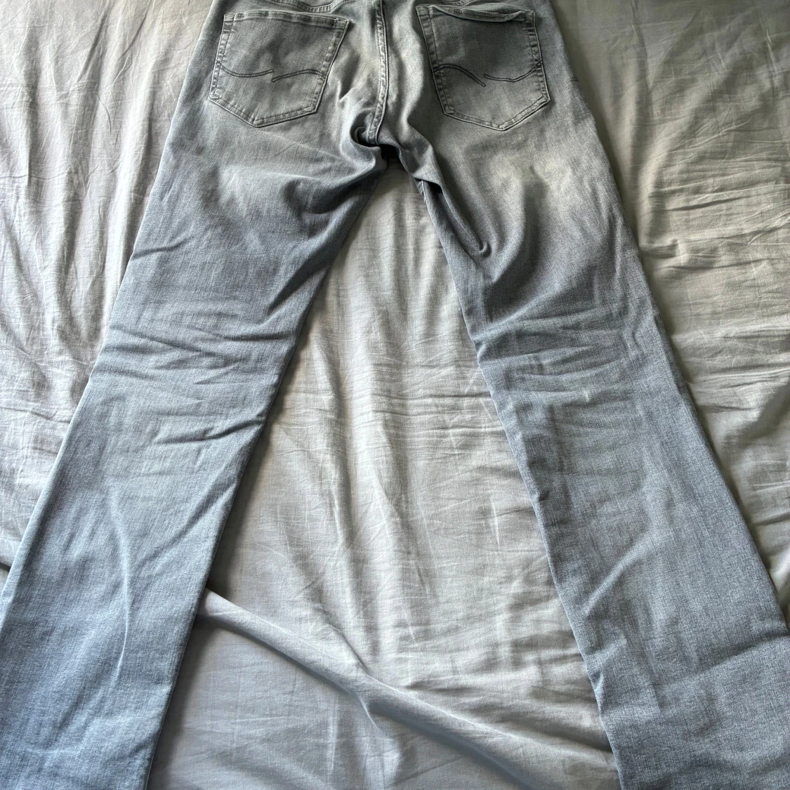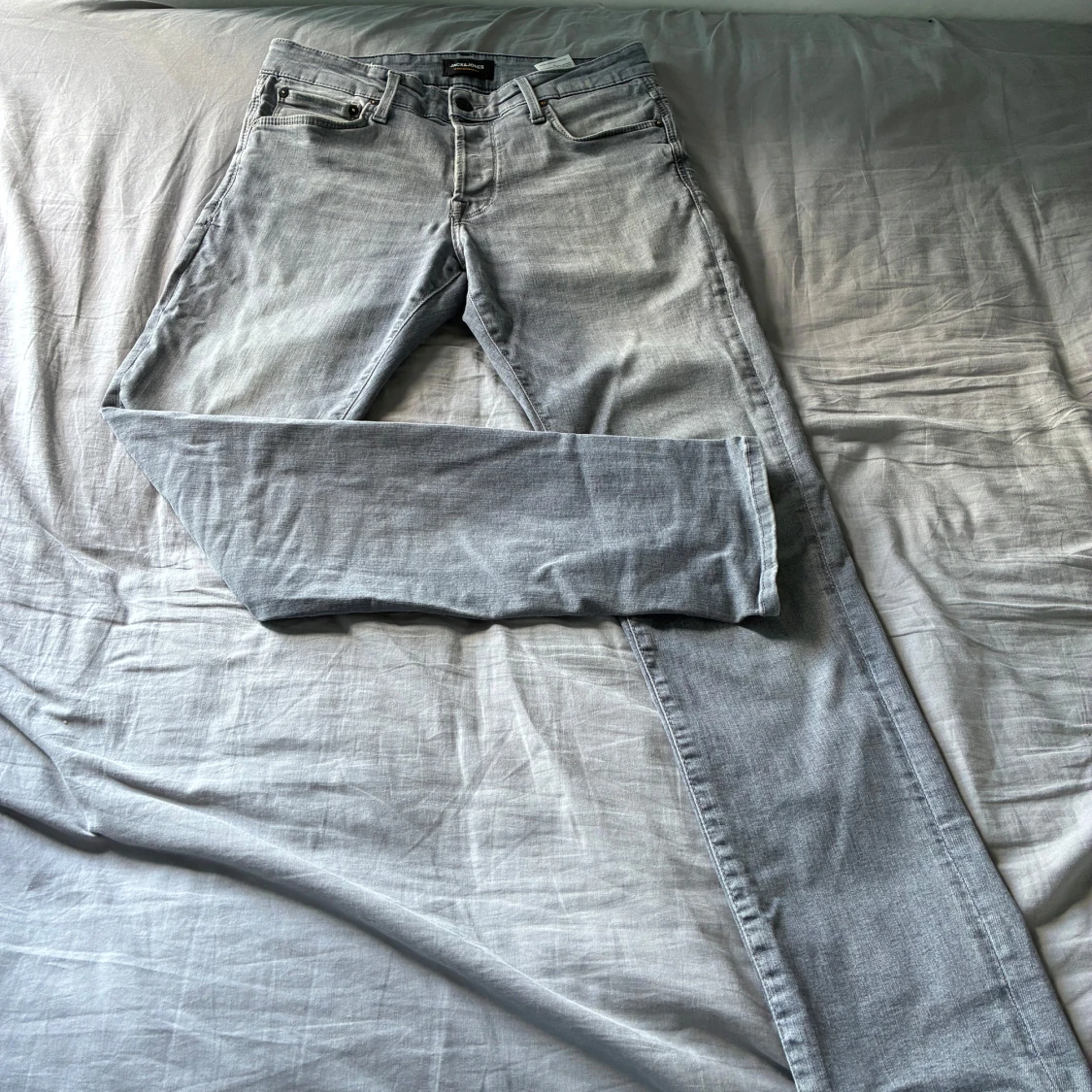 Snygga ljusgrå jeansbyxor i klassisk femficksmodell. Jeansen har raka ben och normal passform, perfekta för en clean och avslappnad look. Tillverkade i mjukt denimtyg som är skönt att bära hela dagen.