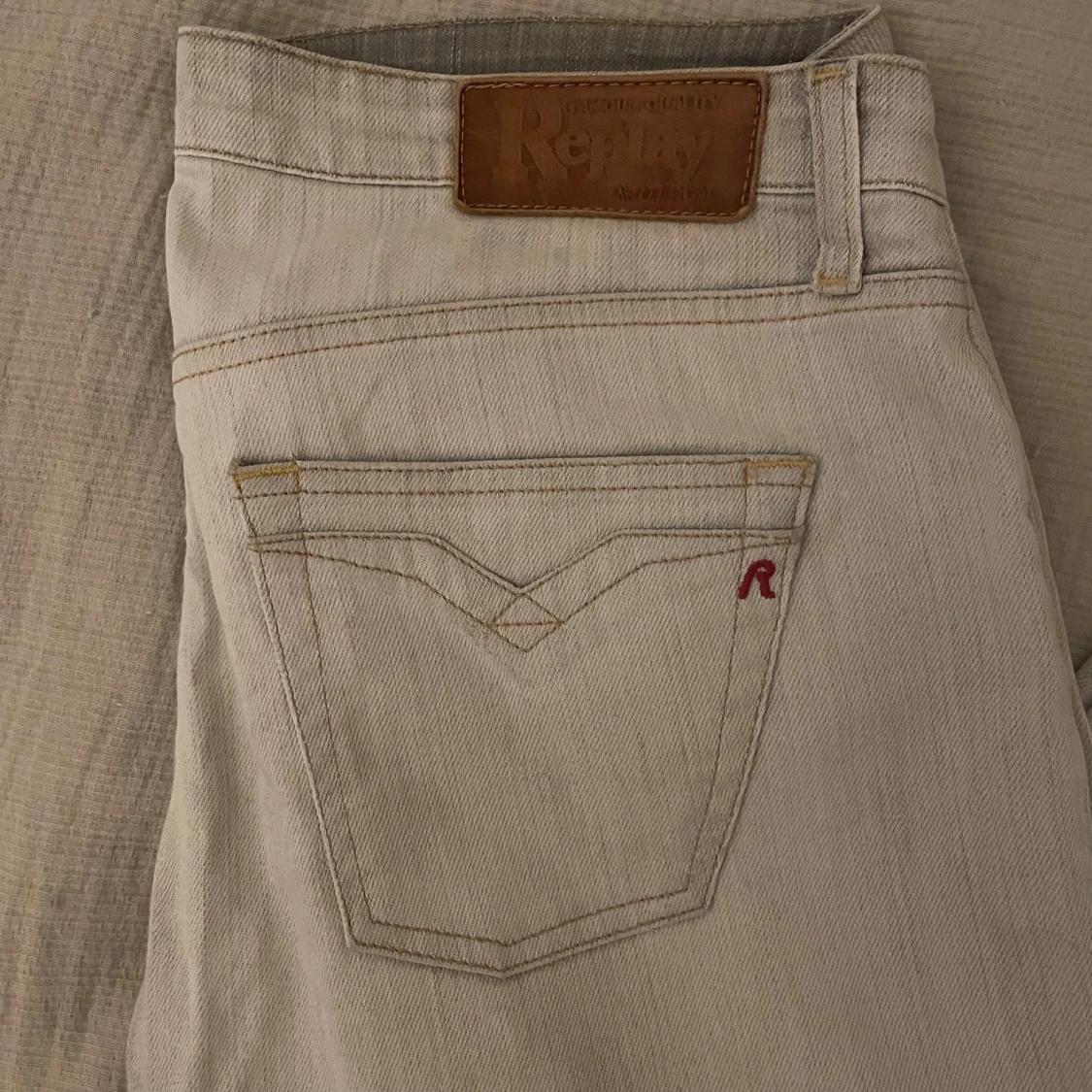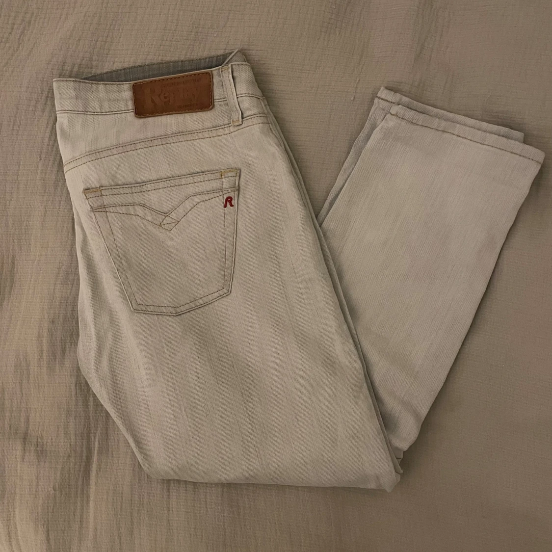 Snygga jeans från Replay i ljusgrå färg. Riktigt bra passform och tidlös stil som funkar till allt – både vardag och fest. 📏 Storlek: [ange storlek] ✨ Skick: Mycket bra skick, sparsamt använda. 🧵 Material: Bomull med stretch för bekväm passform. ✅Pris kan diskuteras