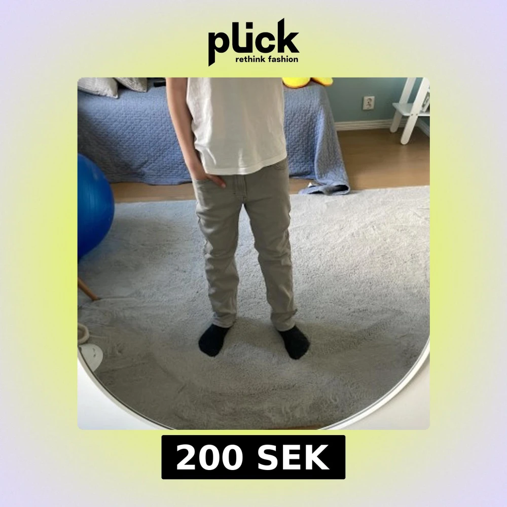 Säljer ett par ljusgrå slim fit jeans från H&M med justerbar midja. Klassisk femficksmodell med knapp och dragkedja framtill. Perfekta för dig som gillar en slim passform och stilren look. Jeansen är endast testade och har inga defekter.
