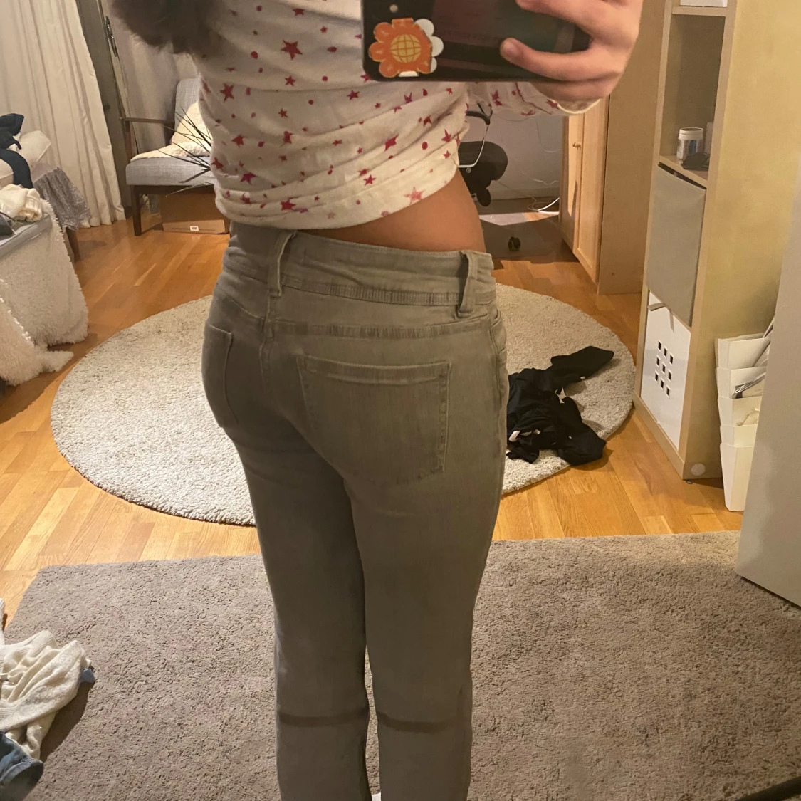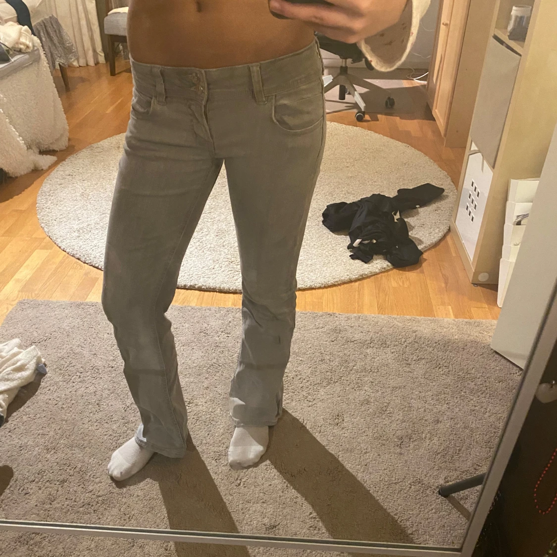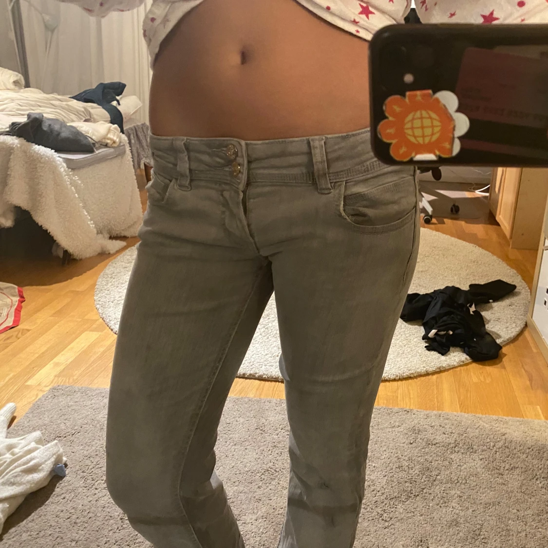 lågmidjade gråa jeans