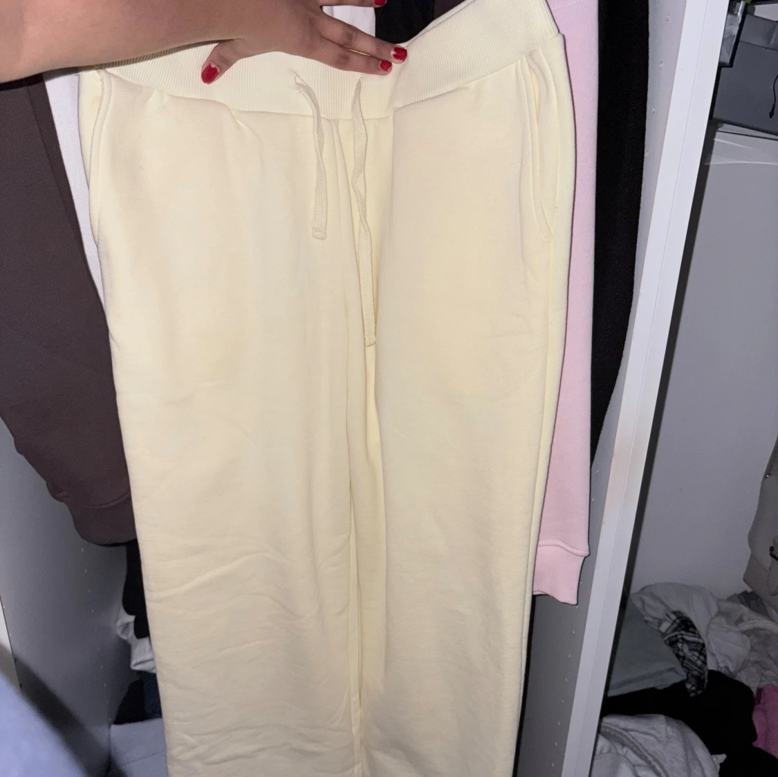 Ljusgula raka mjukisbyxor M