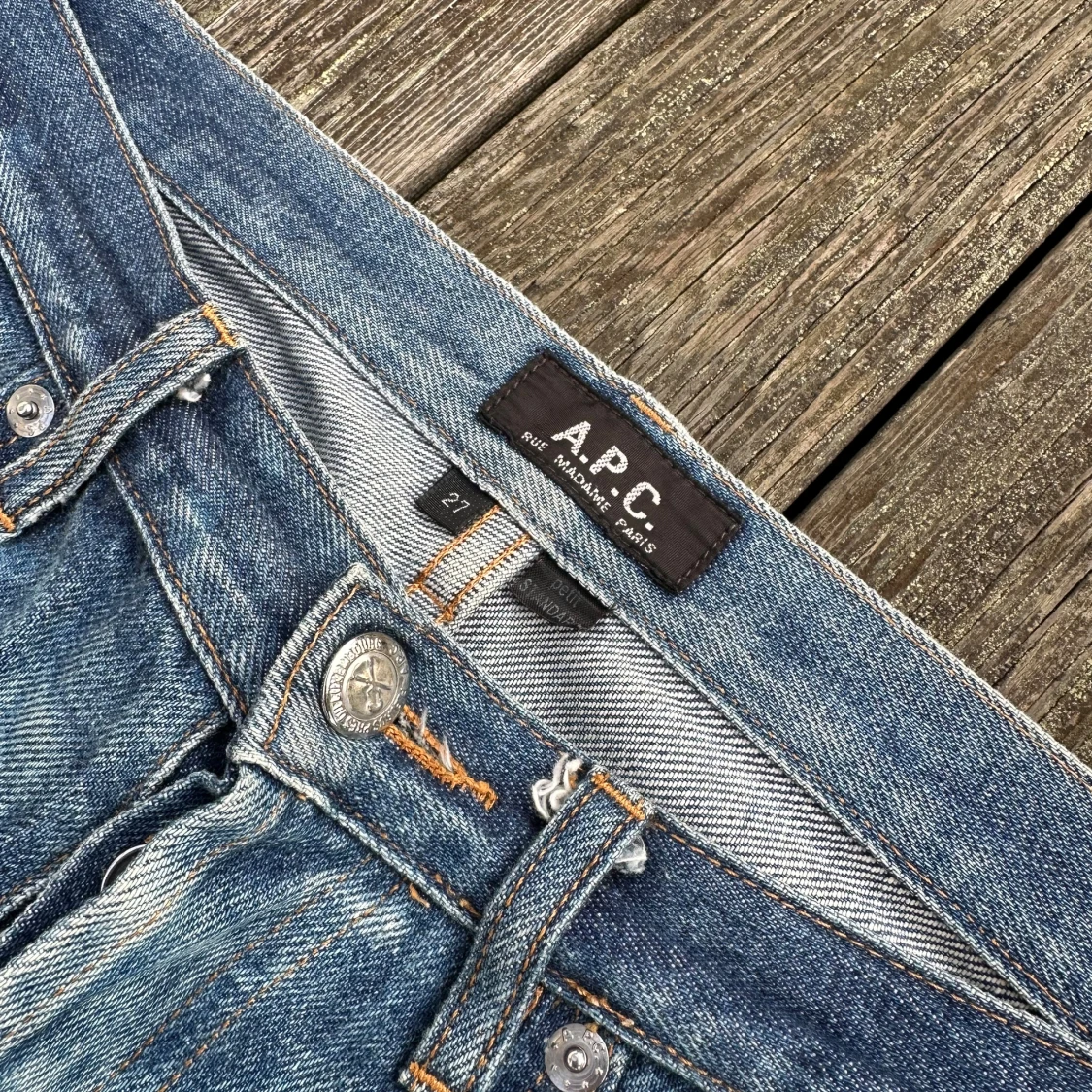 Schyssta jeans från apc , härligt slitna överallt. Mått: ytterbenslängd 95cm, midja 39cm, benöppning 17cm