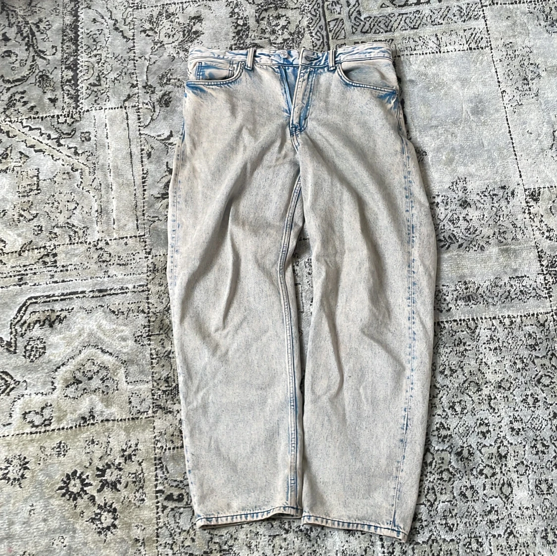Loose fit jeans från H&M i en ljusblå tvätt med tydliga blå sömmar och detaljer. Klassiska baggy jeans, älskar färgen men säljer pga platsbrist i garderoben. Pruta gärna vid snabb affär