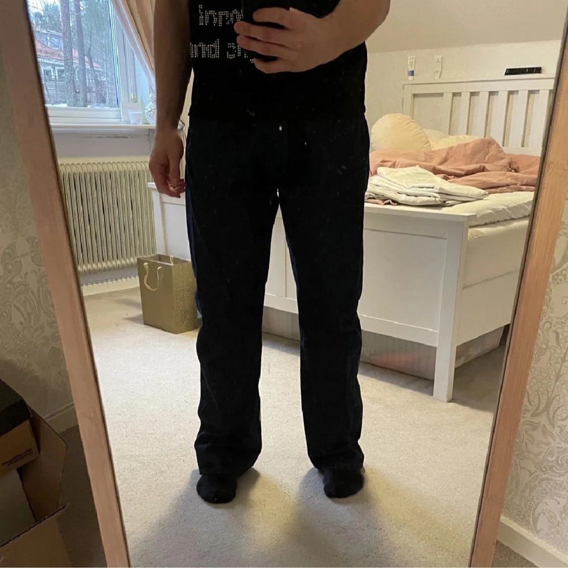 Lånade bilder från förra ägaren och han är 185 cm :) Tänkte ge bort den som en present men det blev inte av! Storlek är 33/34 😊👍 Wide fit