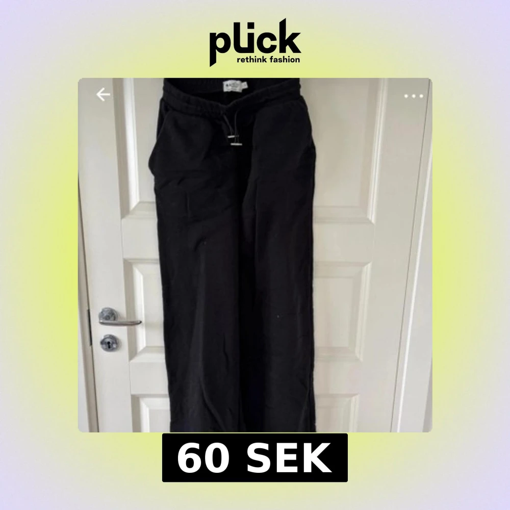 Säljer ett par svarta byxor från NA-KD med elastisk midja i storlek S. Bakfickorna går inte att öppna! Midjemått rakt över: 32cm Innerbenslängd: 73cm Hela benet: 105cm