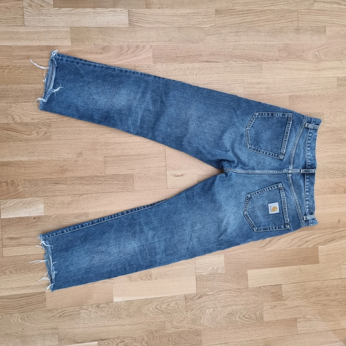 Jeans från carhartt, i storlek 30/32 men avklippta till 30/30 ungefär :)! I jättebra skick, inga defekt! Nypris ca 1100 kr. Den e för stor på mig och därför säljer jag. Första bilden är samma modell men olika färg.