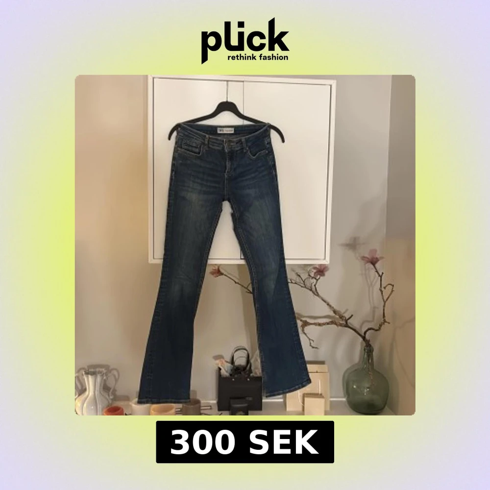 Mörkblåa jeans från Zara. Deras gamla kollektion. Lågmidja och utsvängda.