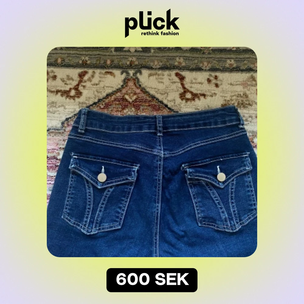 Jätte fina bootcut jeans med knappar på backfickan. Har använd byxorna länge då dem har varit en favorit hos mig därmed är nere delen vid foten lite slitna (swipa för bilden)