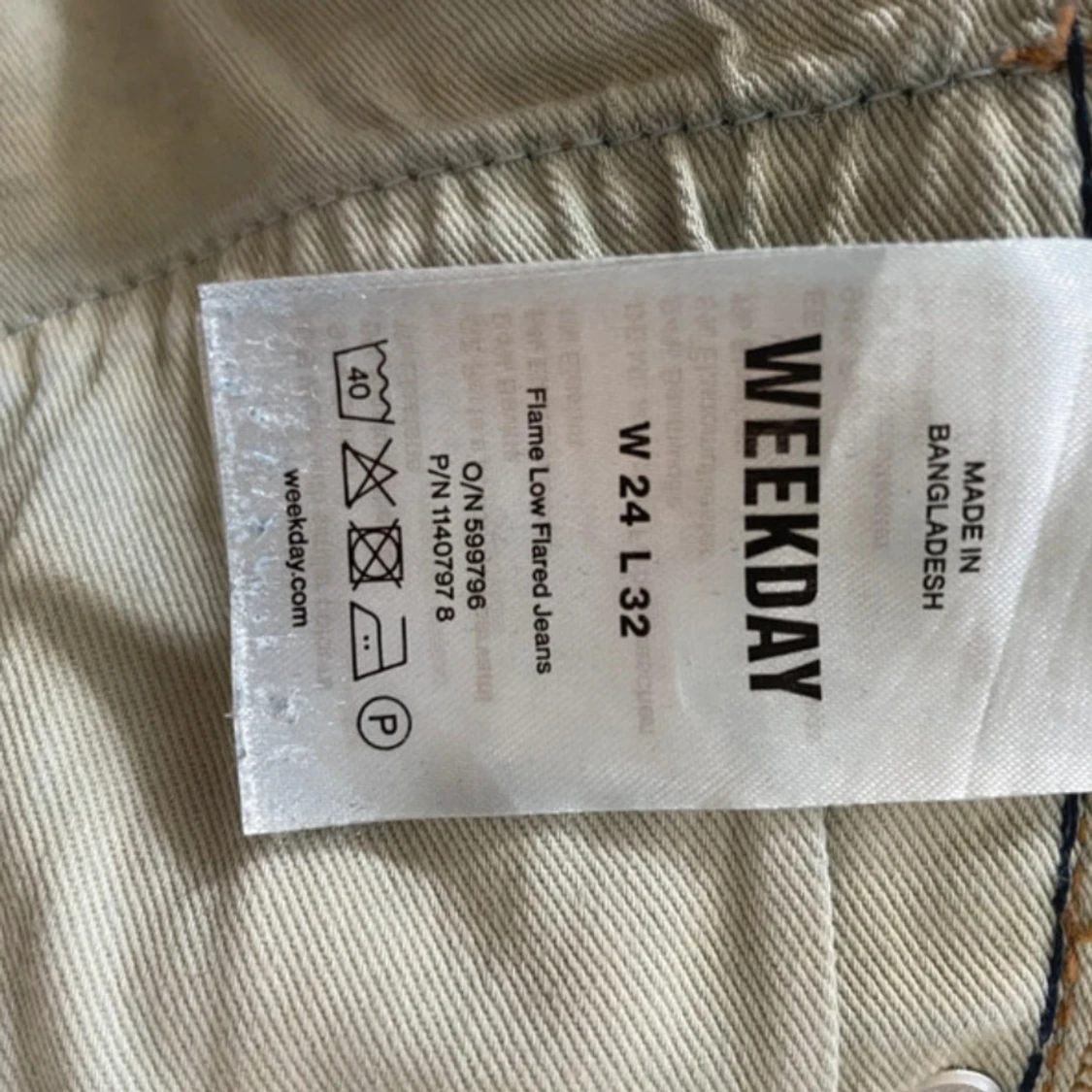 Snygga blå bootcut jeans från Weekday, modell Flame Low Flared. Jeansen har låg midja, klassisk femficksdesign och utsvängda ben. W.24 L.32