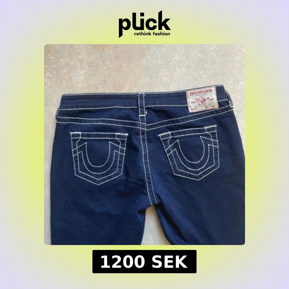 Säljer ett par mörkblå jeans från True Religion med tydliga vita kontrastsömmar och ikoniska bakfickor. Modellen är bootcut med låg midja och klassisk femficksdesign. Jeansen är tillverkade i stretchigt denim för en snygg passform. Storlek w29 men lite stora på mig på sista bilden, endast använda en gång men måste sälja då dom är för stora! Nypris 1599. Priset är fast