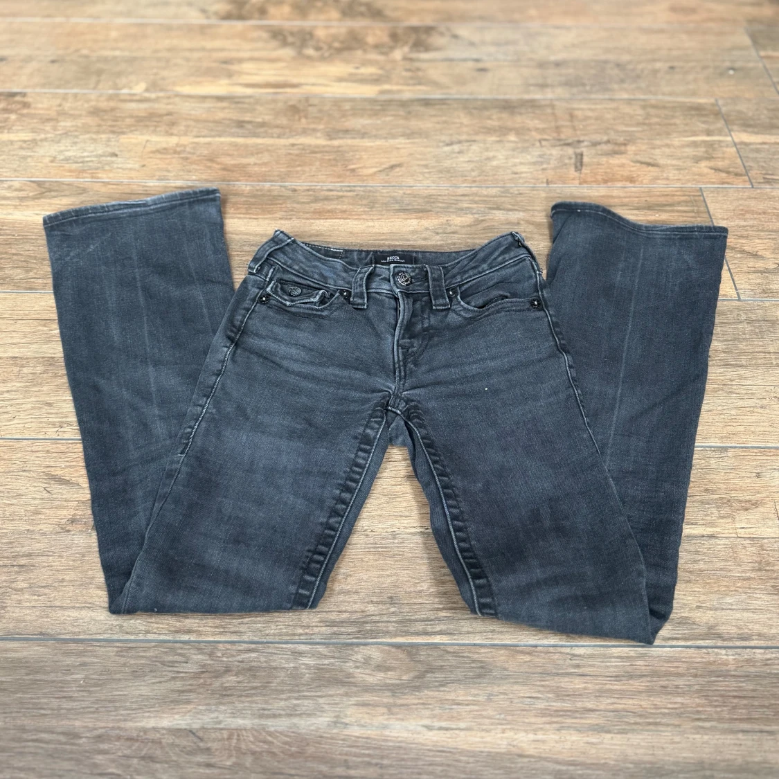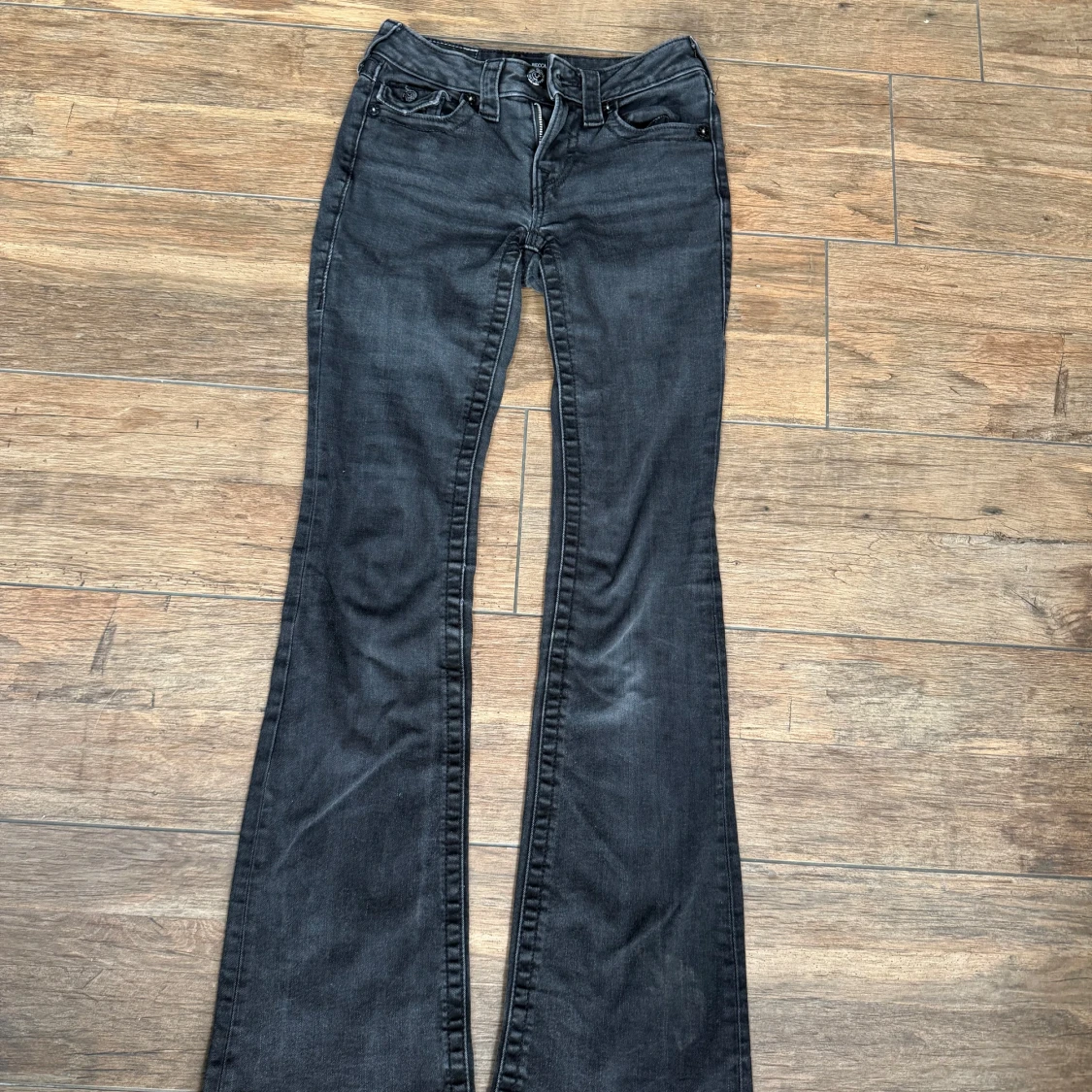 Svarta jeans från True Religion i modellen Becca Mid Rise Bootcut. Tillverkade i mjukt denimtyg som sitter skönt och ger en cool look. Del ör i gott skick och har inga tecken på skador. Dem är i storlek 23. Jag köpte dem för 1400 kr på Kenja så jag säljer dem för halva priset = 700