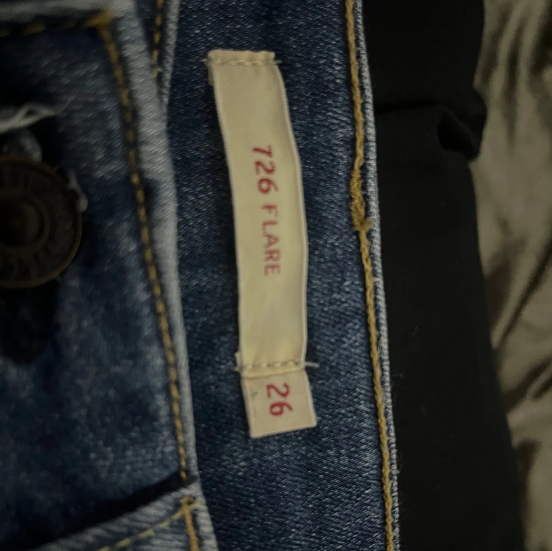 Snygga blå Levis Premium 726 Flare jeans med en klassisk flare-stil. Tillverkade i högkvalitativt denim för en bekväm passform. Skriv för frågor och kolla gärna in annat jag säljer!💗