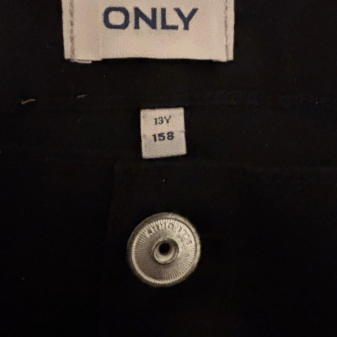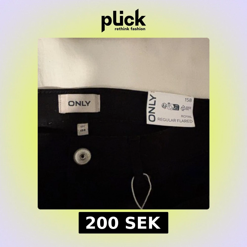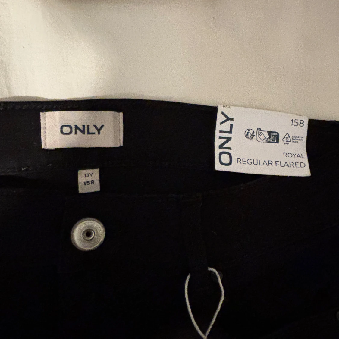 Snygga svarta byxor från ONLY i modellen Royal Regular Flared. Perfekta för en stilren look med en klassisk flare-passform. Byxorna har en knappdetalj framtill och är tillverkade i ett bekvämt material. Tyvärr råkade jag ha sönder en flärp på baksidan men annars är byxorna i helt nytt skick 🫶🏼
