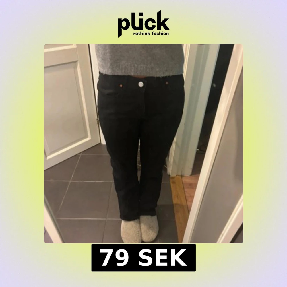 Snygga svarta jeansbyxor med en klassisk design. De har en rak passform och är perfekta för en stilren look. Byxorna har knappar och dragkedja framtill samt fickor både fram och bak. Använda cirka 5 gånger så som nya 🩷🩷🩷