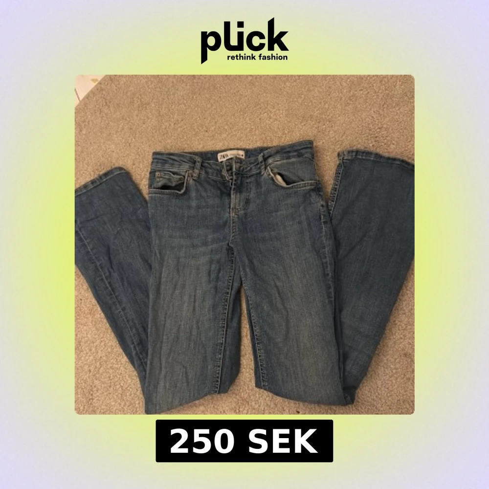 Snygga blå jeans från Zara med låg midja och bootcut. är tillverkade i ett slitstarkt denimtyg. Innebens längd: 81cm, tvärs över midja: 31cm