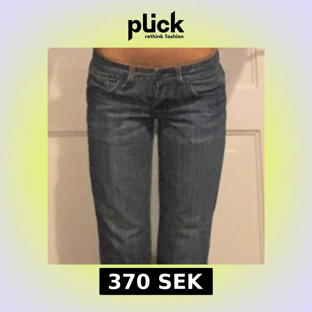 Säljer dessa super snygga jeans, det står ingen storlek men skulle säga xs! Midjemått: 35cm Innerbenslängd: 78cm💘 gylfen är trasig, personen jag köpte de sa att nypris var 700-800💞