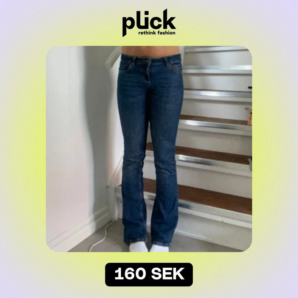 Superfina low waist bootcut jeans från Zara som inte säljs längre💗 De har en liten spricka vid insidan av låret men annars i bra skick💗