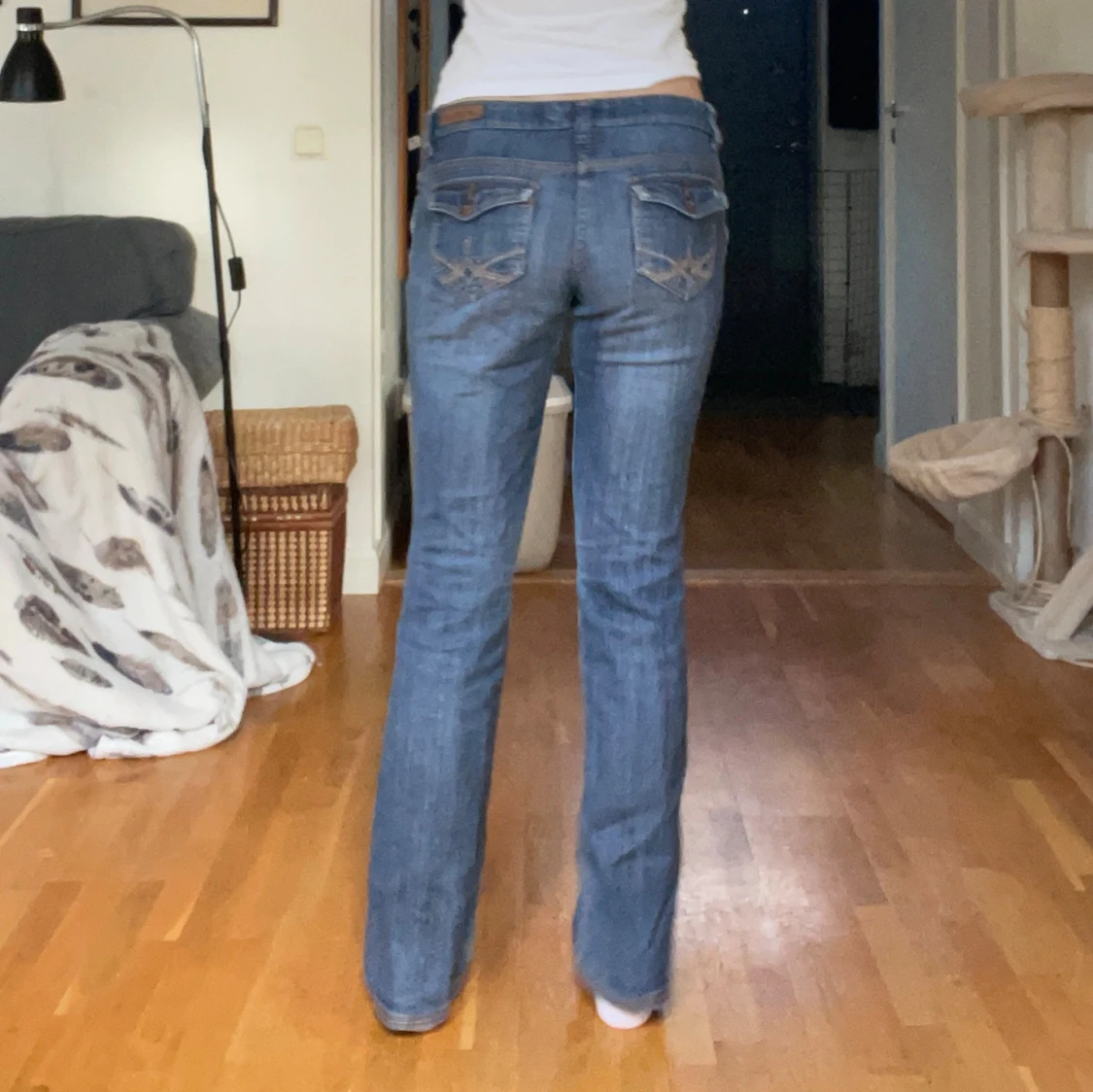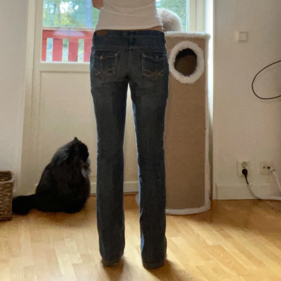 Så snygga bootcut jeans. Jag på bilden är 170cm och jeansen är perfekt långa på mig.
