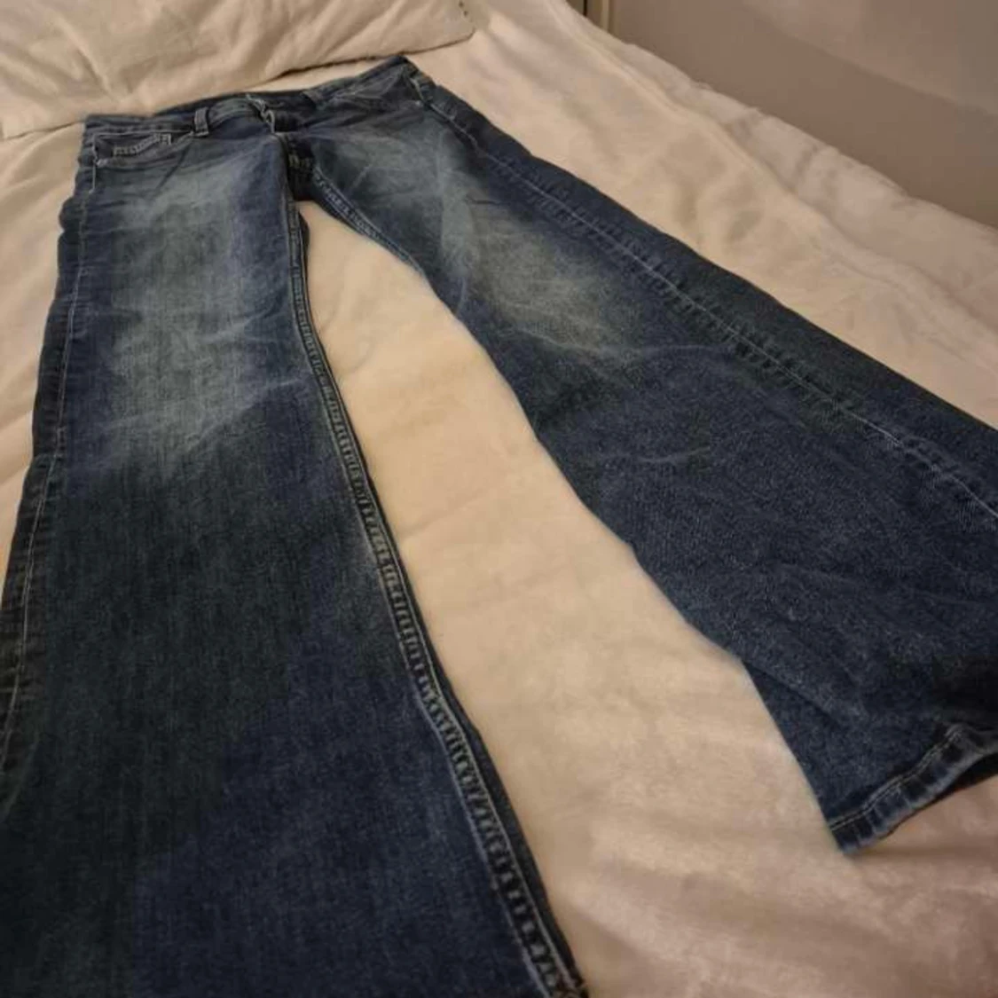 Klassiska low waist jeans i blå denim med bootcut passform. Snyggt slitna detaljer framtill och femficksmodell. Jeansen har normal midja och är tillverkade i robust bomullsjeans. Perfekta för dig som gillar retrovibbar och bredare ben.