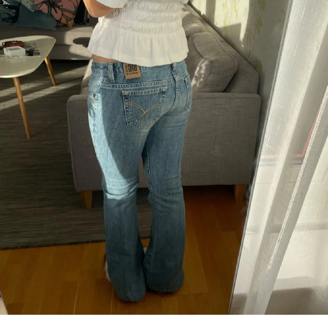 Low waist bootcut jeans med snygg tvätt från bigstar, midjemått: 37 innebenslängd: 84
