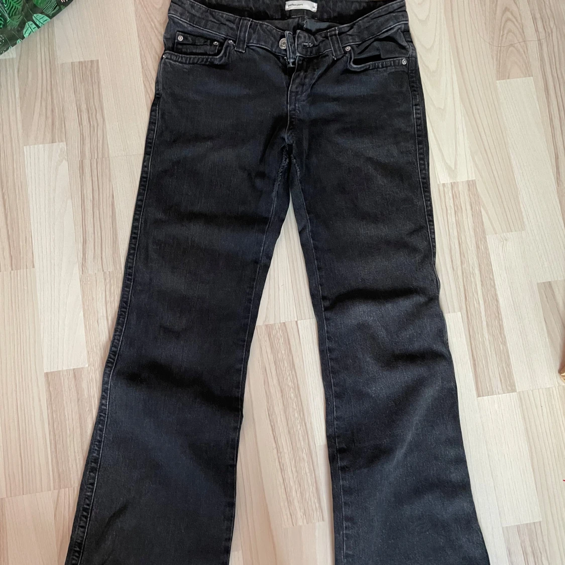 Supersnygga svarta bootcut jeans,är lite slitna vid insidan av låren där av priset