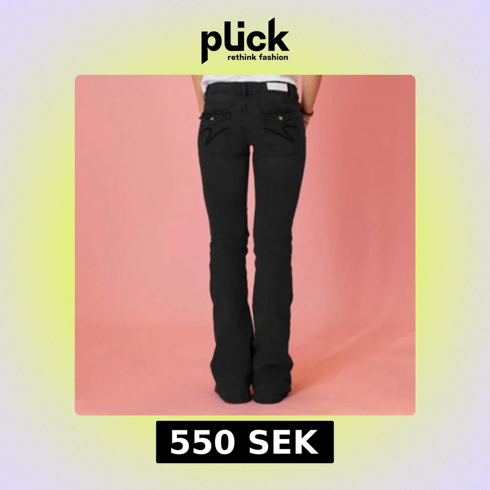 Snygga svarta jeans från din vintage shop med bootcut passform och låg midja. Jeansen har klassiska fem fickor, coola detaljer på bakfickorna och är tillverkade i mjukt jeansmaterial med lite stretch🩷🩷