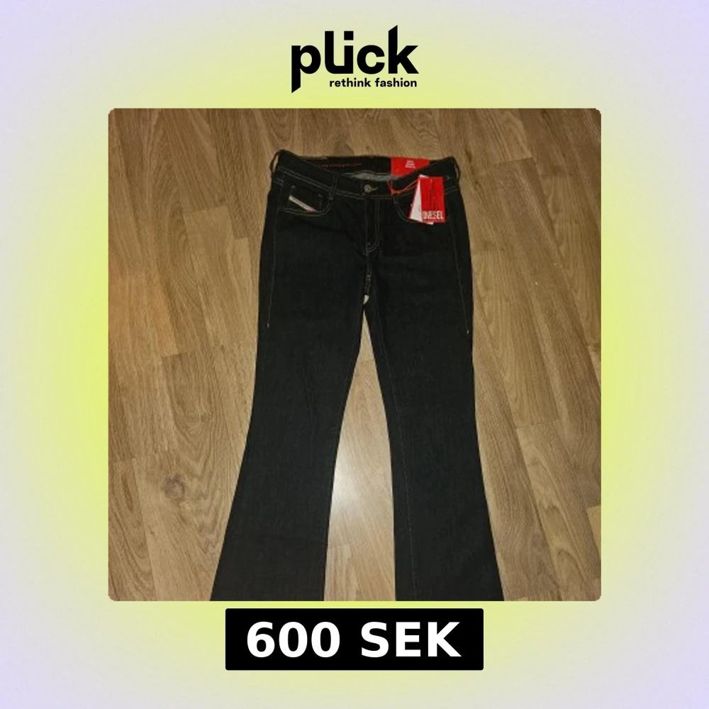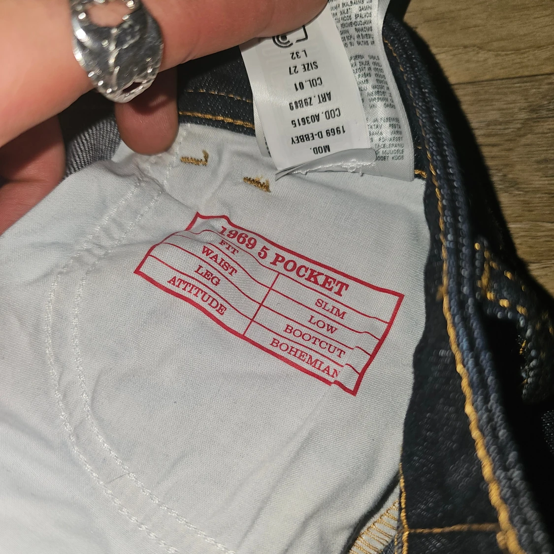 Snygga jeans från Diesel med klassisk bootcut passform och kontrasterande gula sömmar. Modellen har fem fickor, knapp och dragkedja fram. Helt oanvända med lappar kvar. W27 L32