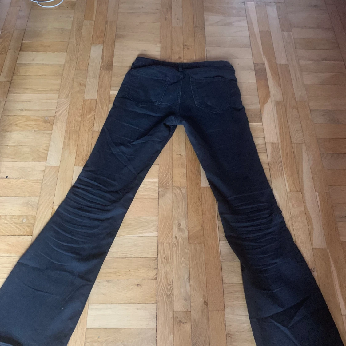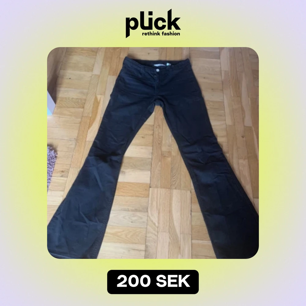 köpta på barnavdelningen på H&M men är tyvärr för korta för mig som är 167cm lång. låg midja, flare. innerbenslängd: 74cm , mått över midjan: 35cm nypris 200kr💞