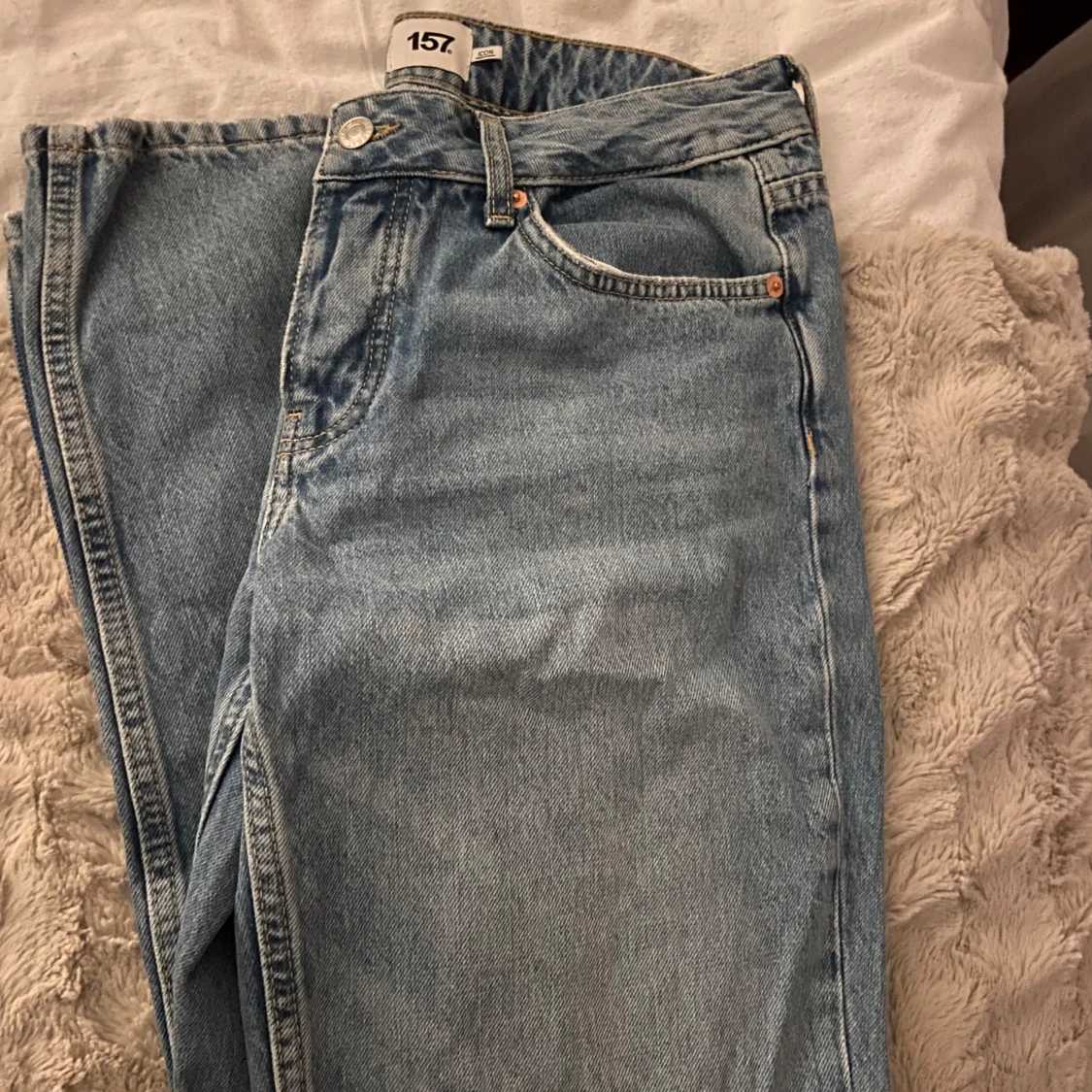 Säljer ett par low waist blåa jeans från lager 157, model ”icon” normal passform,nypris 400k. använda fåtal gånger. Skulle nog säga att dom är lite ”loose” i passformen:))