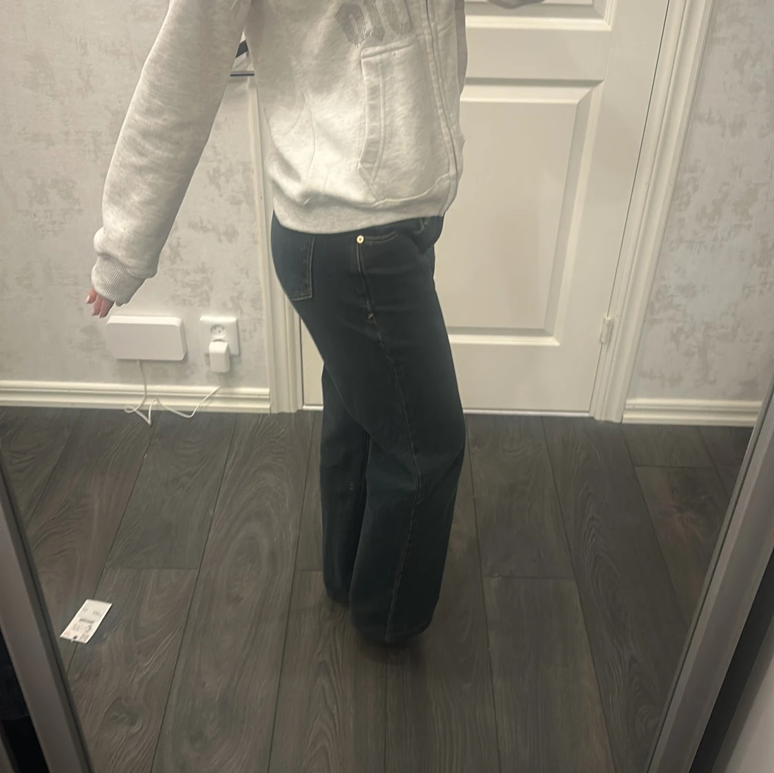 Snygga mörkblå jeans med raka ben och låg midja. Klassisk design med knappar och dragkedja framtill. Perfekta för en avslappnad stil.