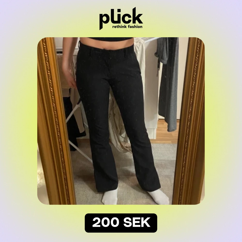 Svarta Low waist flare kostymbyxor med slits längst ner från Bikbok. De är i bra skick men säljs då de har blivit för små för mig. 🥰