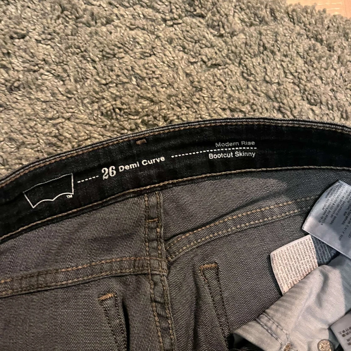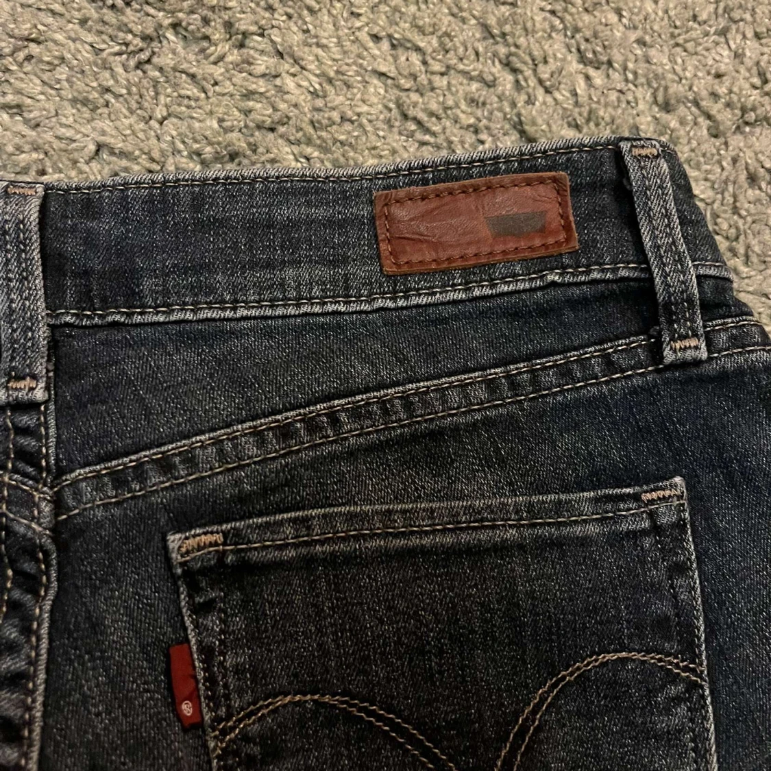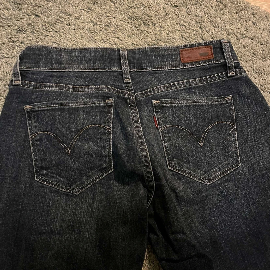 Snygga mörkblå Levis jeans i modellen Bootcut Skinny. De har en modern midja och klassiska bakfickor med Levis logga. Perfekta för en stilren look. Midjemåttet är 70!