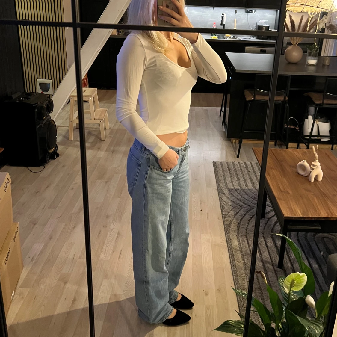 Säljer ett par ljusblå jeans med låg midja och raka/vida ben från lager 157 i modellen low rider. Använda 2 gånger. Jag är 168cm som referens