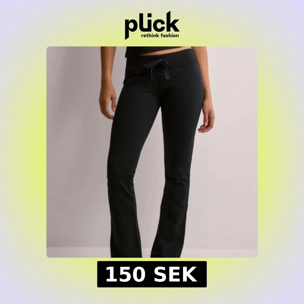 Svarta mjukisbyxor med bootcut-modell och knytband i midjan. Byxorna har en bekväm passform och sitter bra. Dessa är nästan helt nya och säljer pga att dom inte kommer till användning. Sitter snyggt men bekvämt, rekommenderar!💕💕