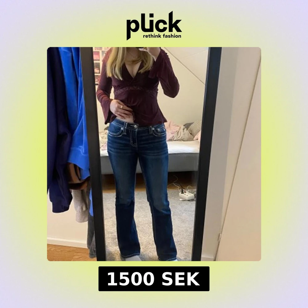Säljer nu mina Miss Me jeans då jag vuxit ur dom. Köptes i höstas 2024 Köptes på Raglady by Tara för 2000 kr och är endast använda ett fåtal gånger. Passar mig som är 167cm. Storlek 27, skulle säga att de är som strl 36-38. Midjemåttet är ca 36cm.Pris kan diskuteras 💗
