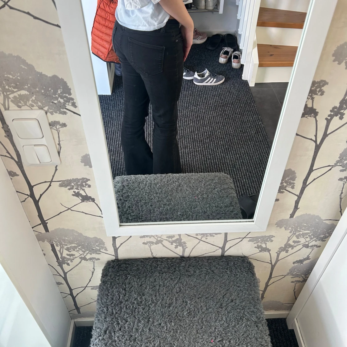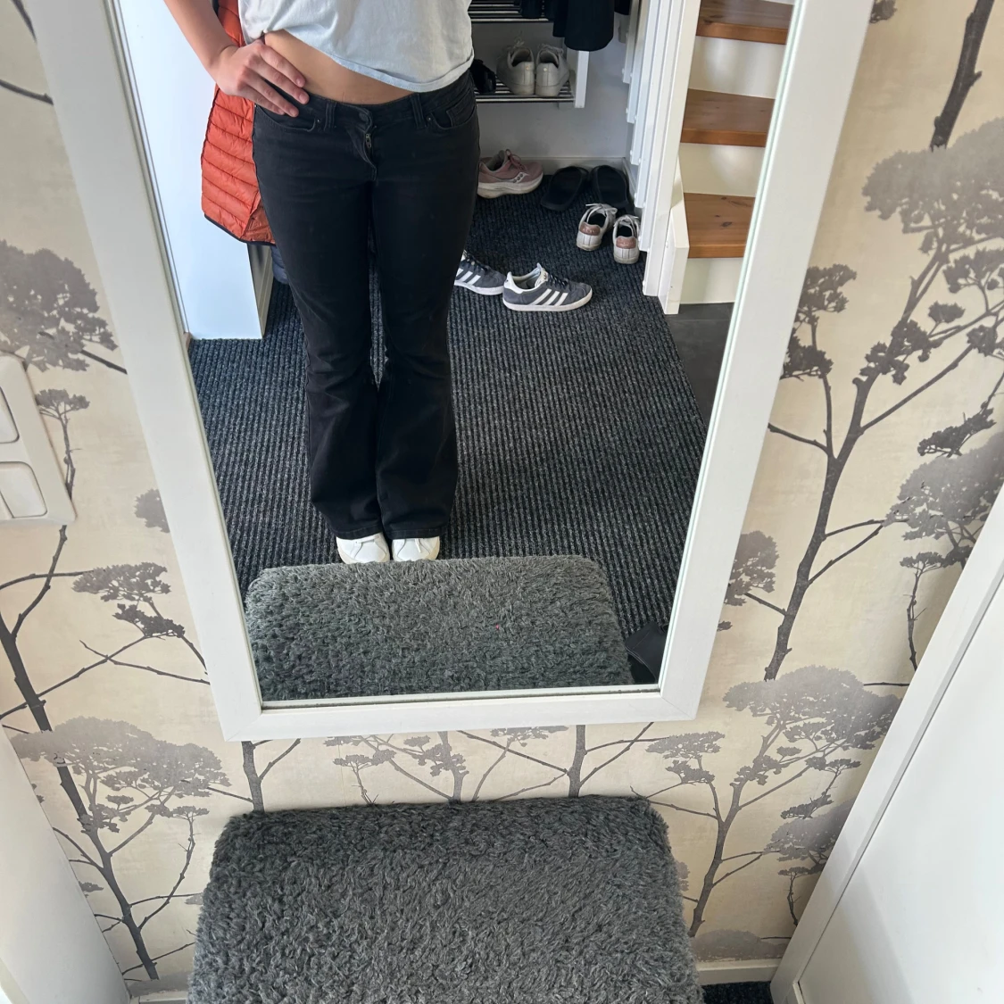 Jätte snygga svarta low waist flared jeans från Vero Moda. Lite urtvättade men överlag jätte fint skick🩷599 nypris. Bilder återpublicerade från när jag köpte dem på plick, de var tyvärr lite för små för mig men så fina annars!